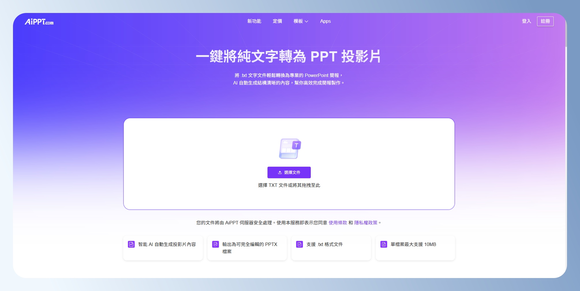 支援圖片、文字、Word 或 PDF 檔案轉簡報功能,不論是文件還是課程資料,都能快速轉換成簡報。系統會自動整理重點,並生成大綱與拆分段落,快速將文字轉換成投影片。