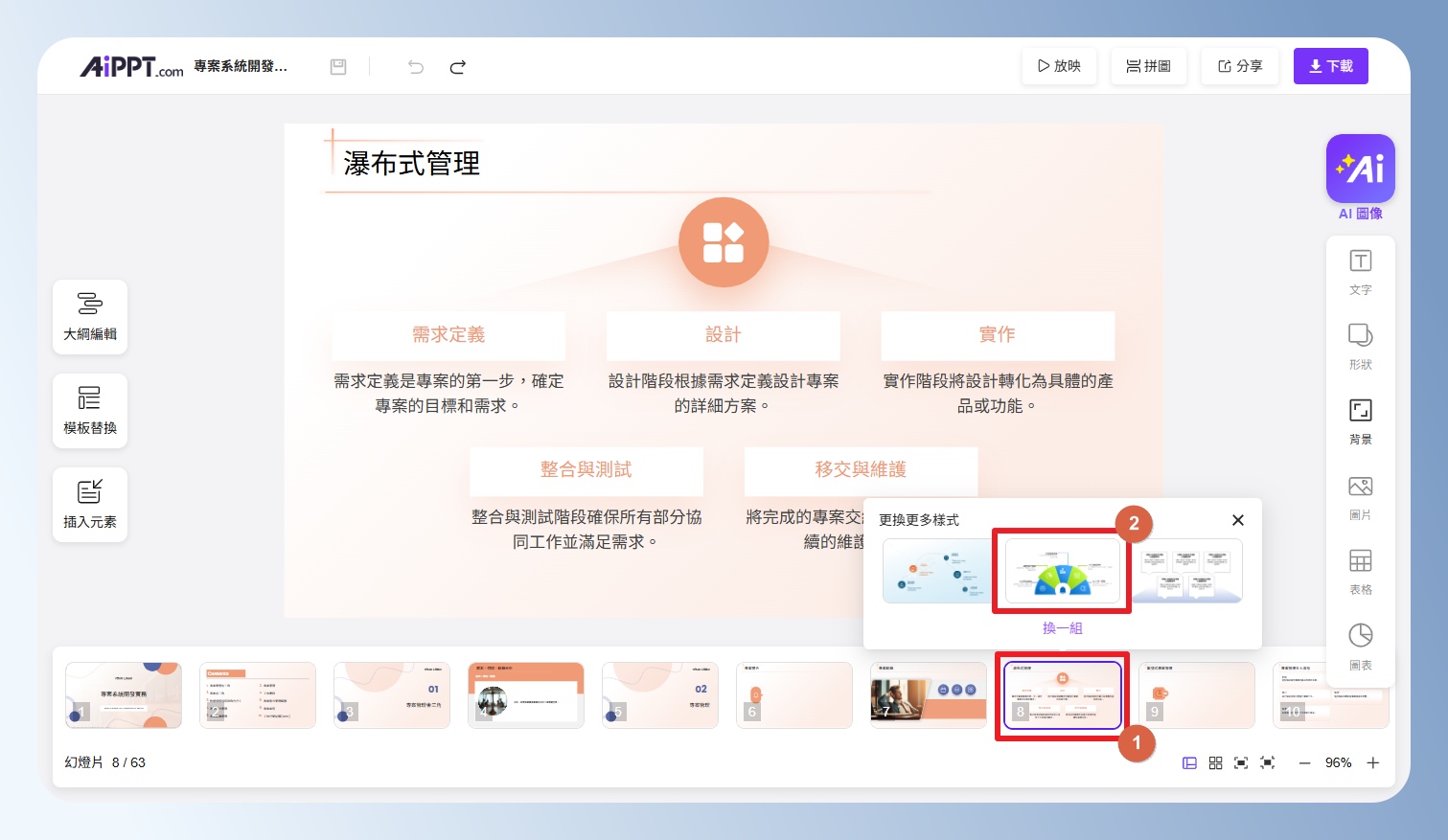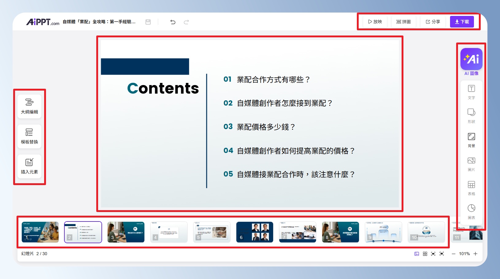 - 支援匯出 PPT:可下載 PPT 檔案,可使用 PowerPoint 進行微調。