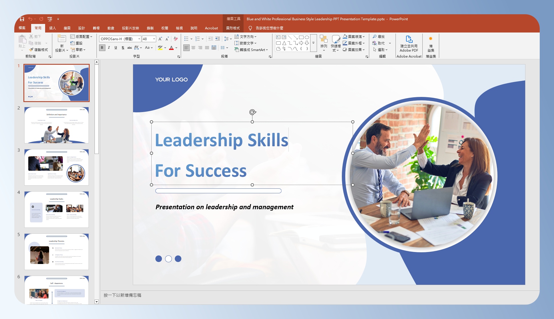 在電腦上開啟已下載的 PowerPoint 檔案,接著就可以開始編輯了。