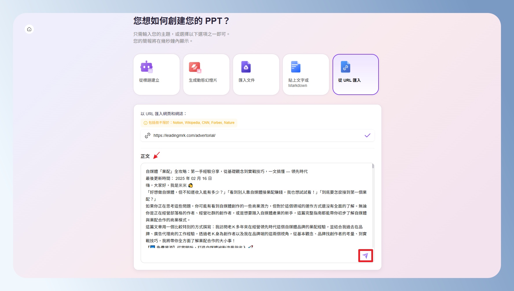 這篇我用領先時代的文章:自媒體「業配」全攻略:第一手經驗分享,從基礎觀念到實戰技巧,一文搞懂,來進行測試。下方的正文區塊會自動抓取網頁內文。