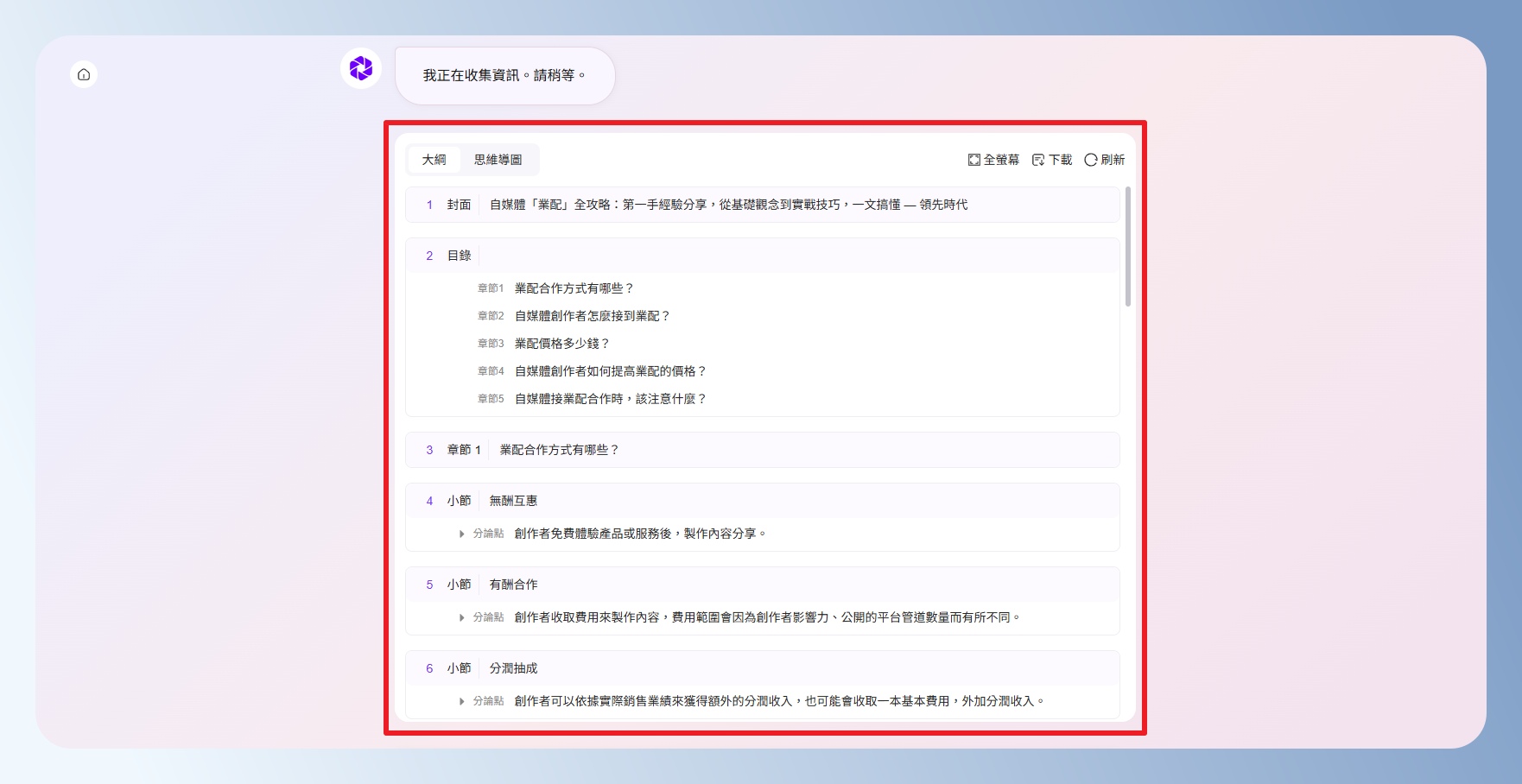 - 自動拆解大綱:能快速建立清楚的分頁邏輯,讓內容更有條理。