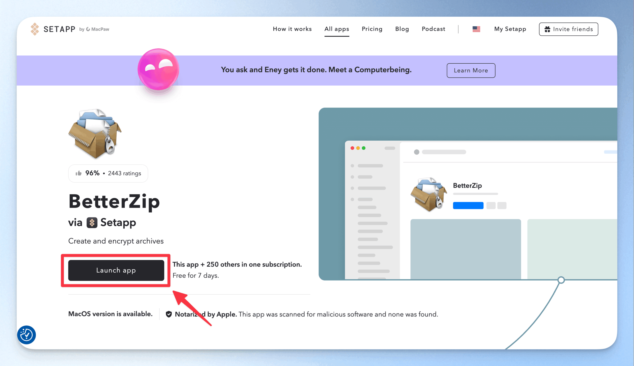 目前使用 BetterZip 最實惠的方法,就是透過我們的獨家連結,註冊 Setapp 下載到自己電腦裡,就可以免費使用整整一個月,還可以再一並試用其他好用的數位工具!