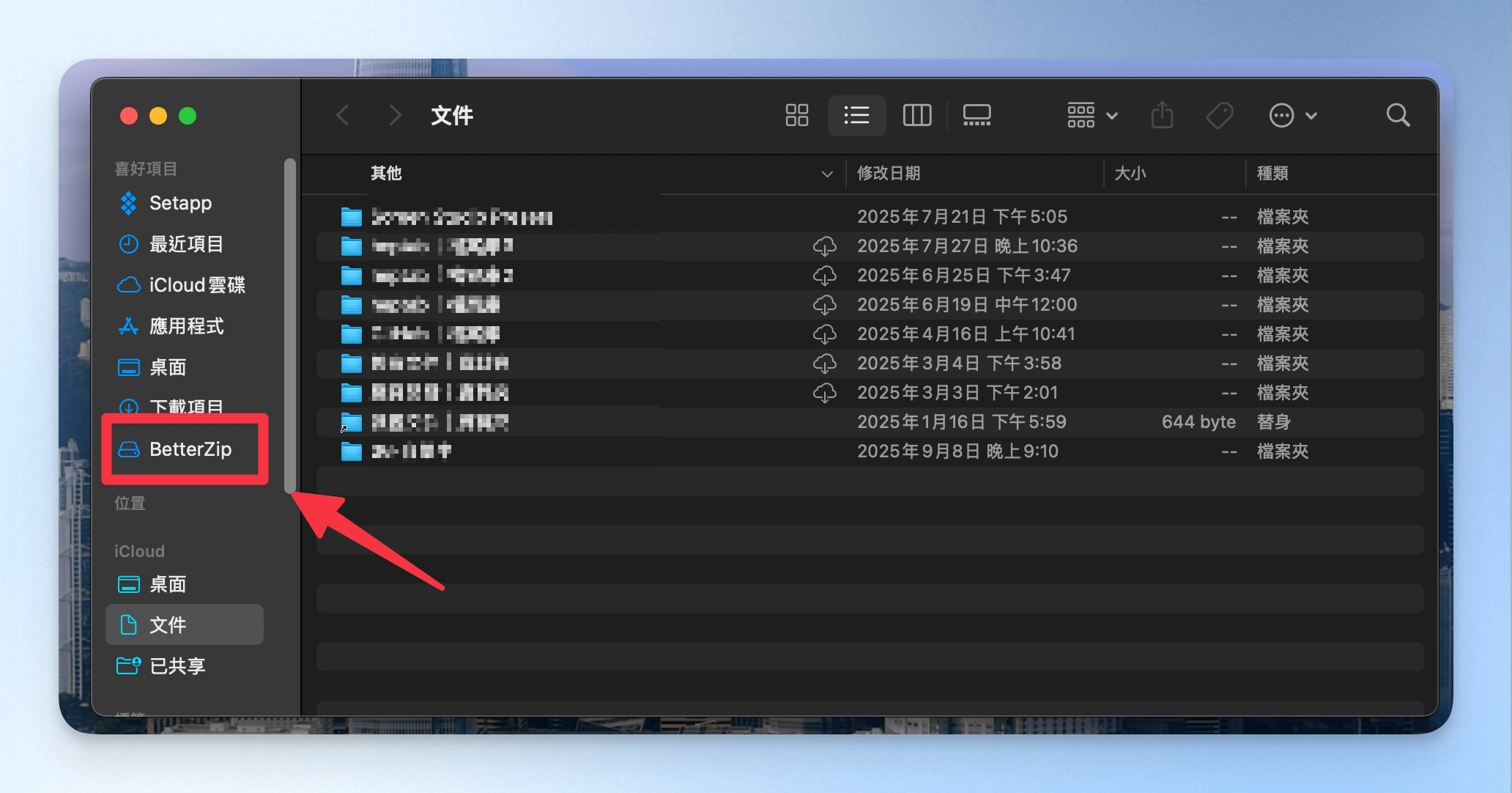能夠直接新增 BetterZip 在 MAC 的 Finder 側邊欄位,讓你超高效、快速開啟軟體去壓縮資料。