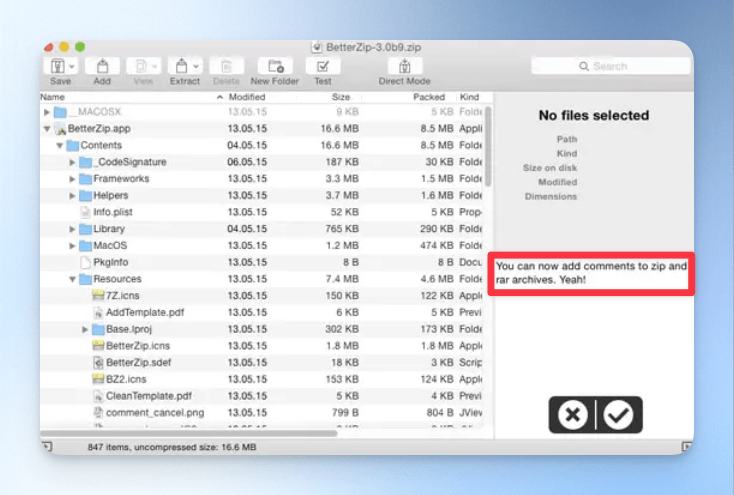 BetterZip 可以開啟並解壓縮多達 30 種壓縮檔格式,包括: