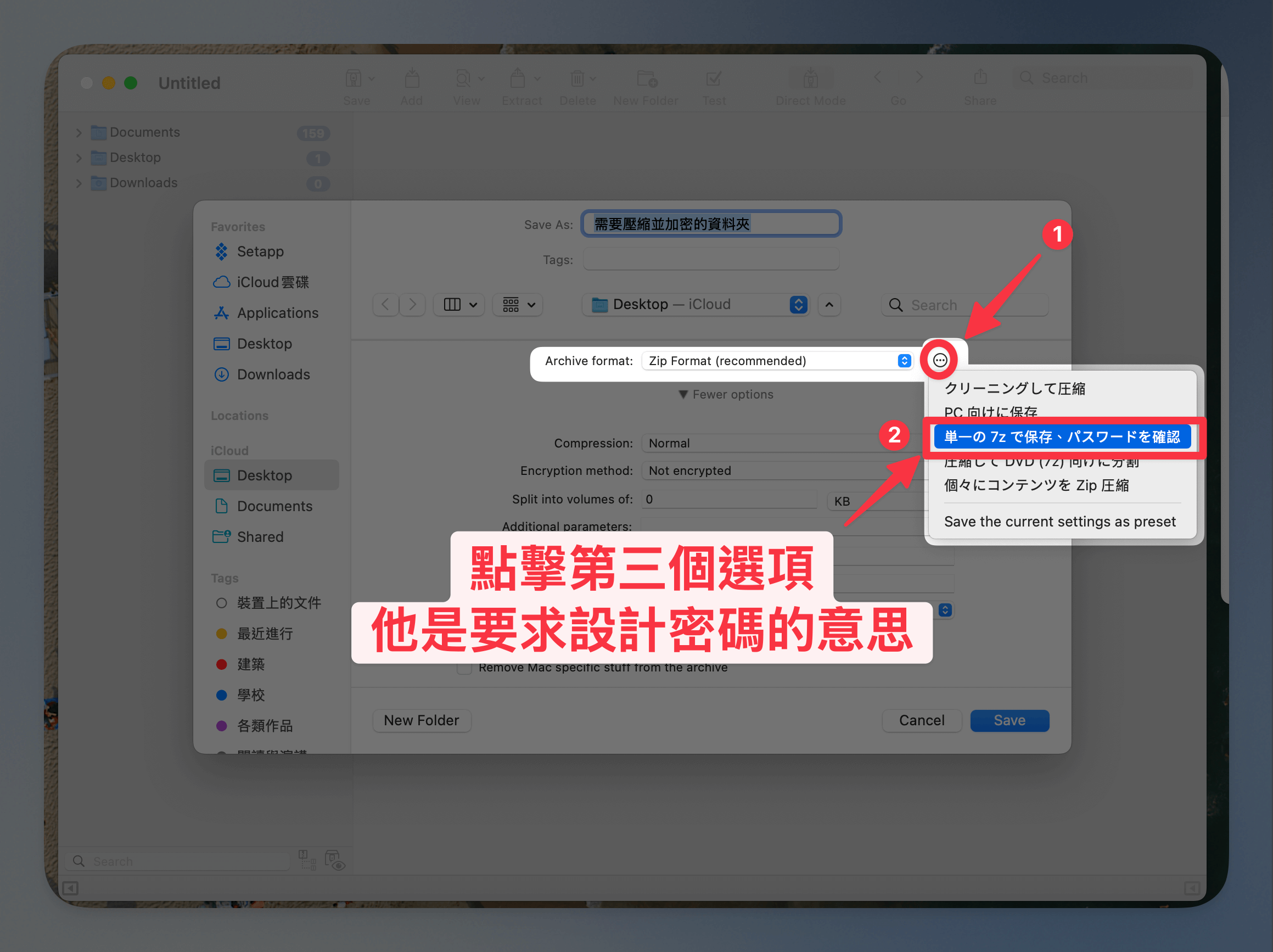 點擊下方欄位,選擇要壓縮成的檔案格式step 3