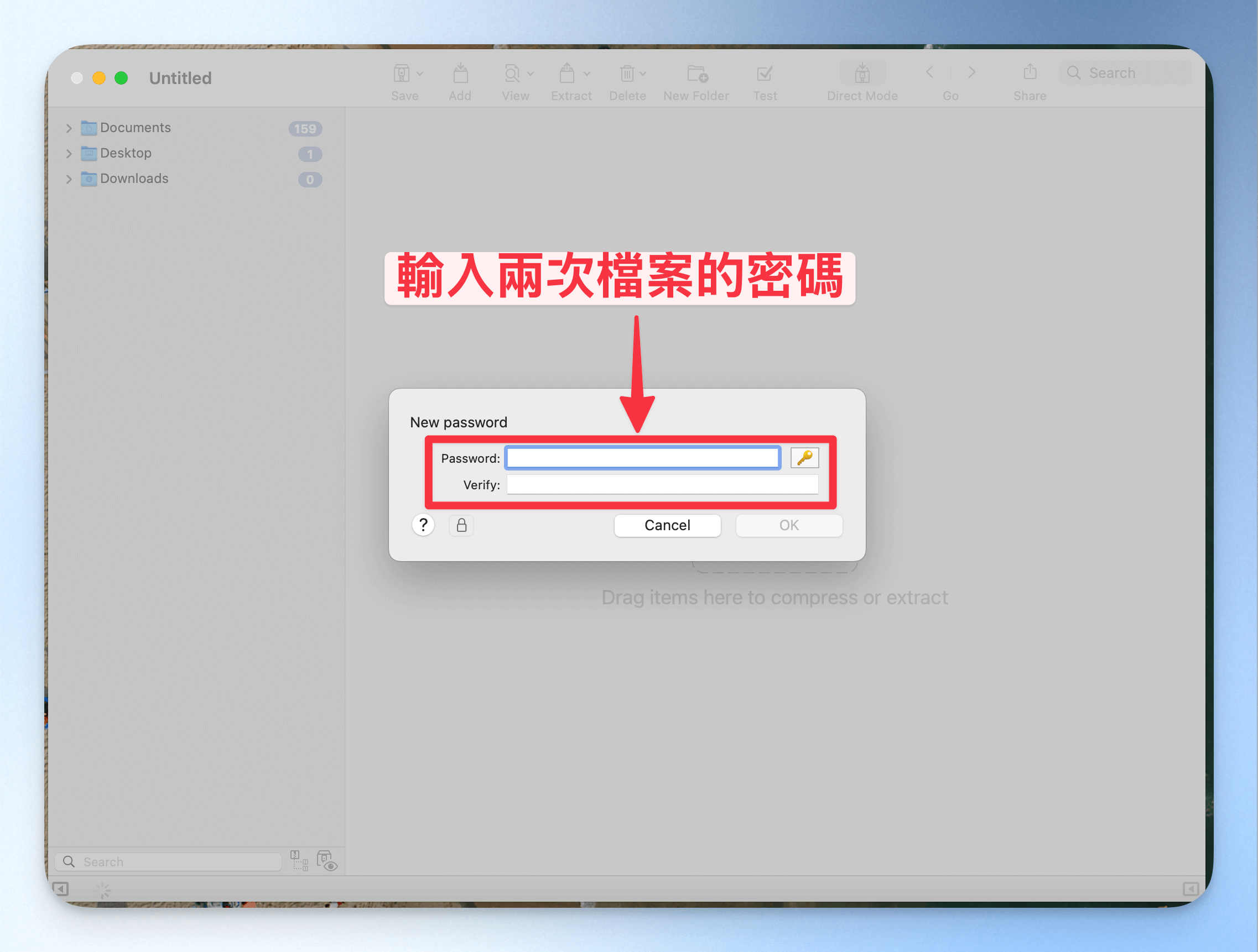並輸入兩次,開啟該壓縮檔時需要的密碼step 6