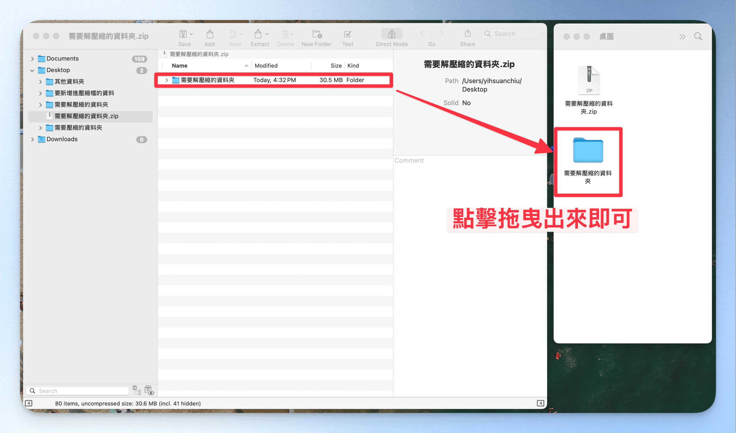 也可以直接把整個資料夾移出來就解壓縮成功囉!我個人覺得, BetterZip 最方便的就是不用全部解壓縮就可以預覽、編輯壓縮檔案這件事情。