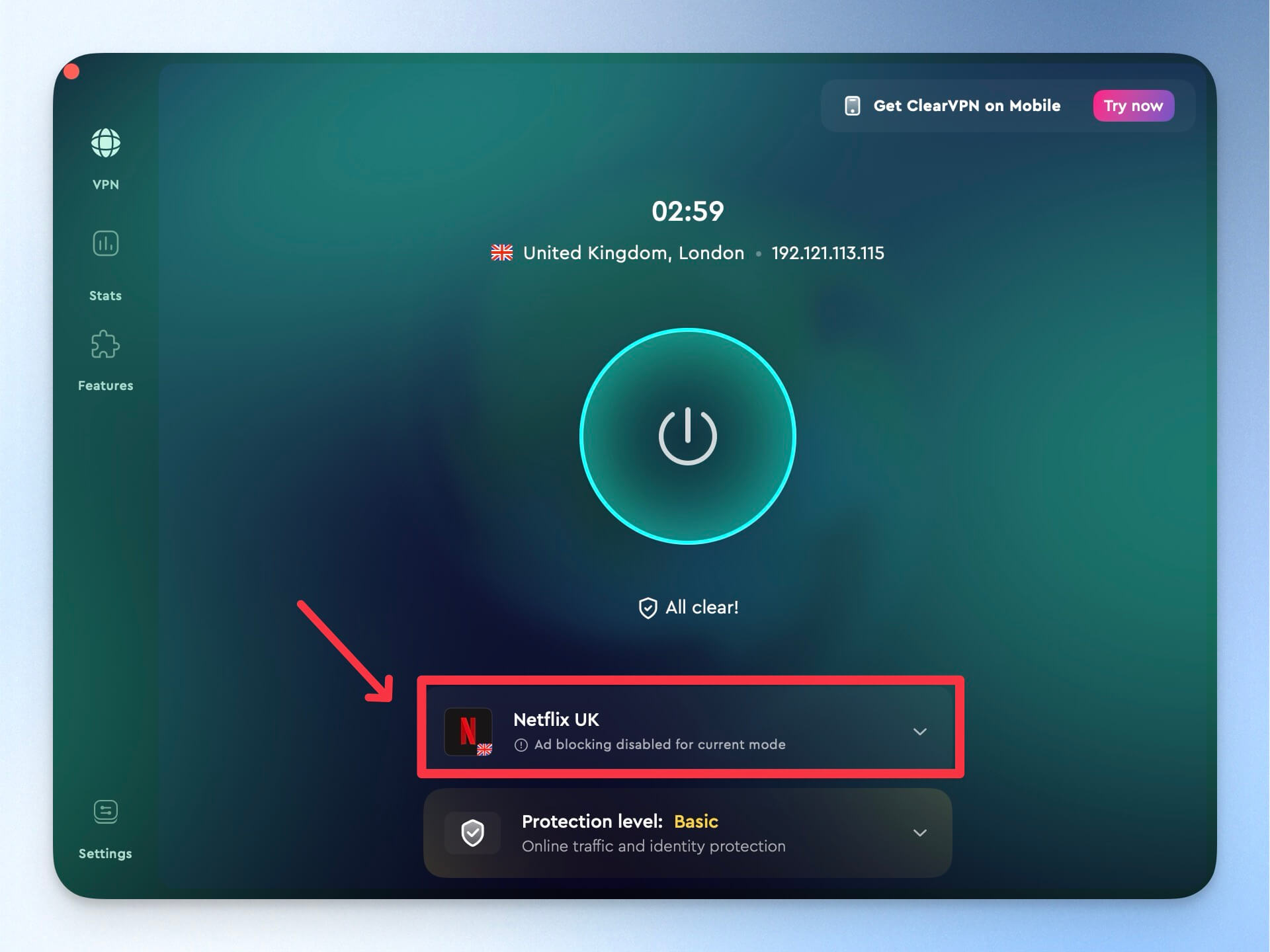 ClearVPN 由於可以把你的連線「包裝」成其他國家的,就能讓串流軟體誤認你所在位置,而幫你解鎖當地的串流服務。跟一般 VPN 不同的是,如果你要使用串流服務,你要連專門的串流服務用 VPN。