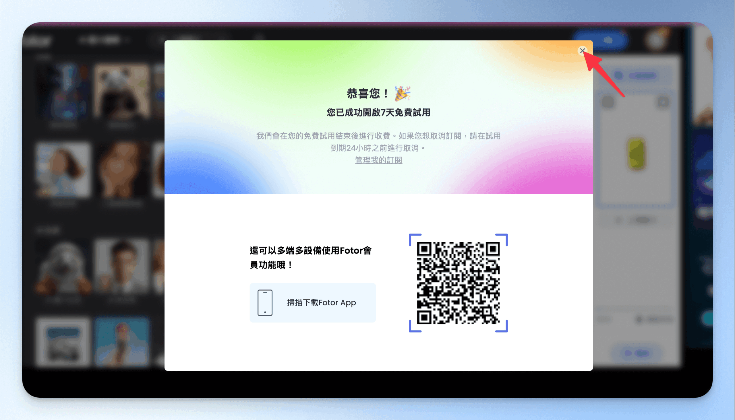 1. 偶爾的一次性需求:使用付費工具的試用版就夠,像是 Fotor、Canva 都提供免費試用期,能在短時間內體驗完整功能,不需要長期綁約,非常適合臨時要交報告、製作活動素材跟一次性專案使用者。