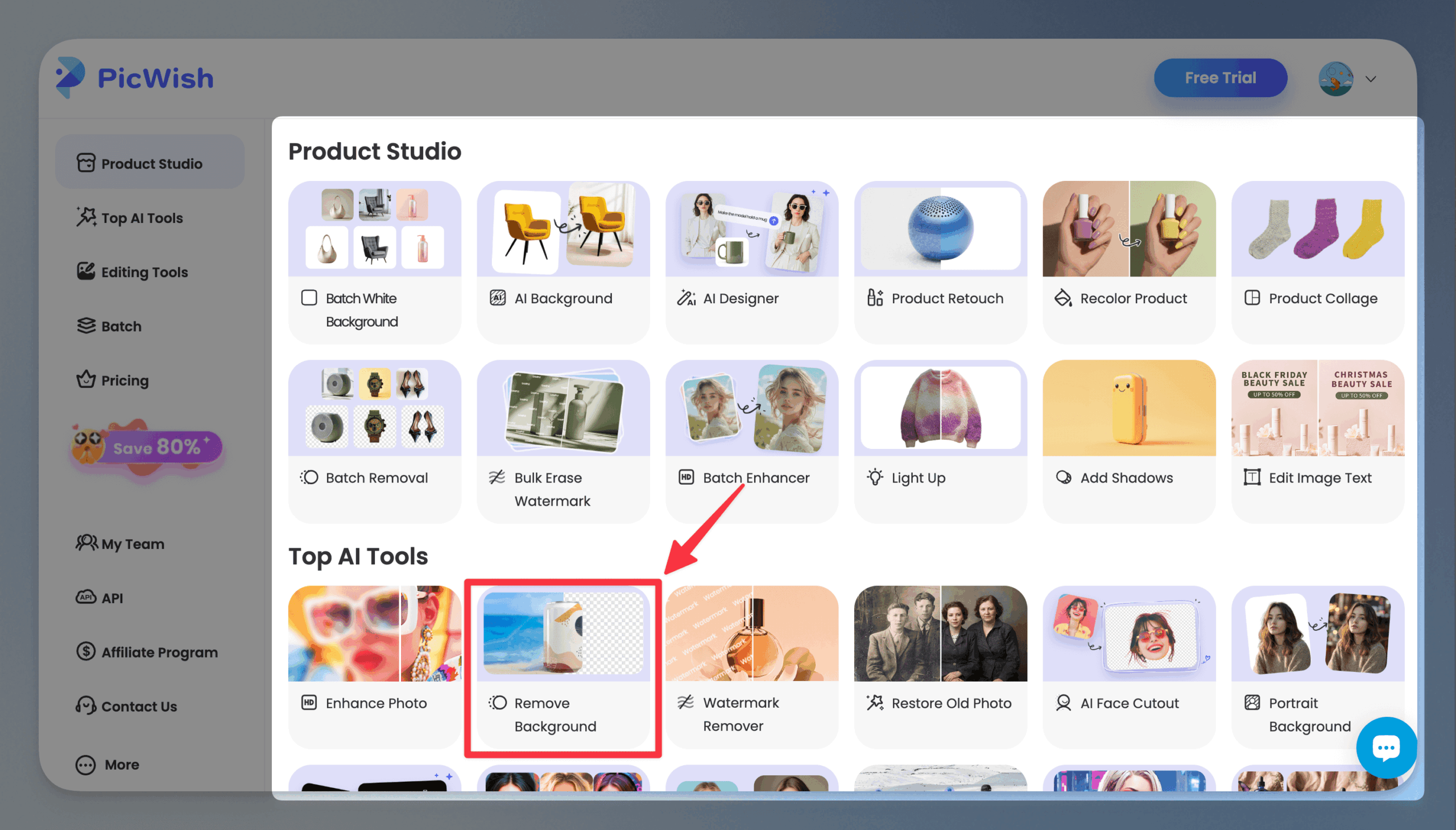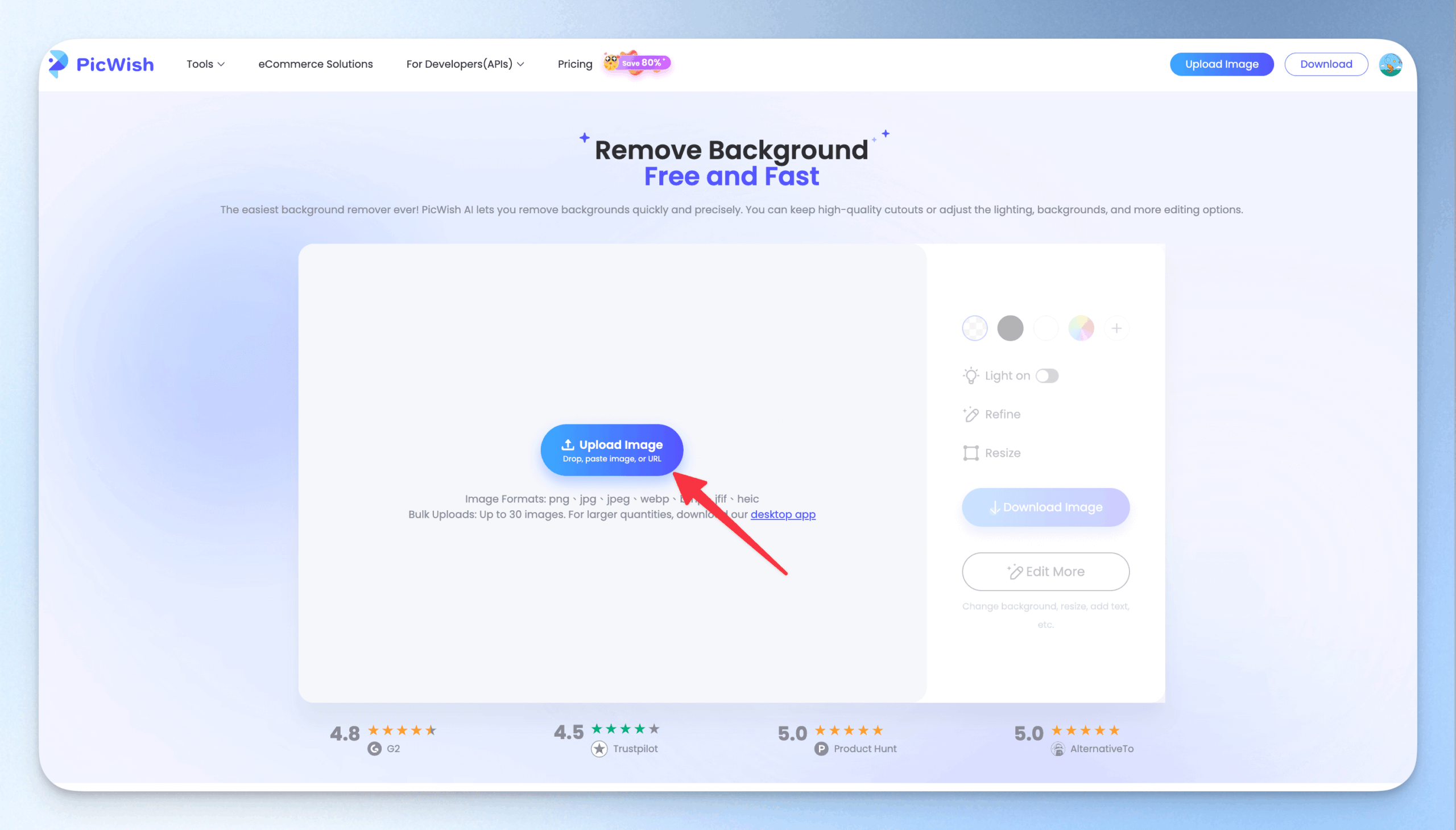• 如果你的圖片不多,想要快速又免費就選 PicWish。