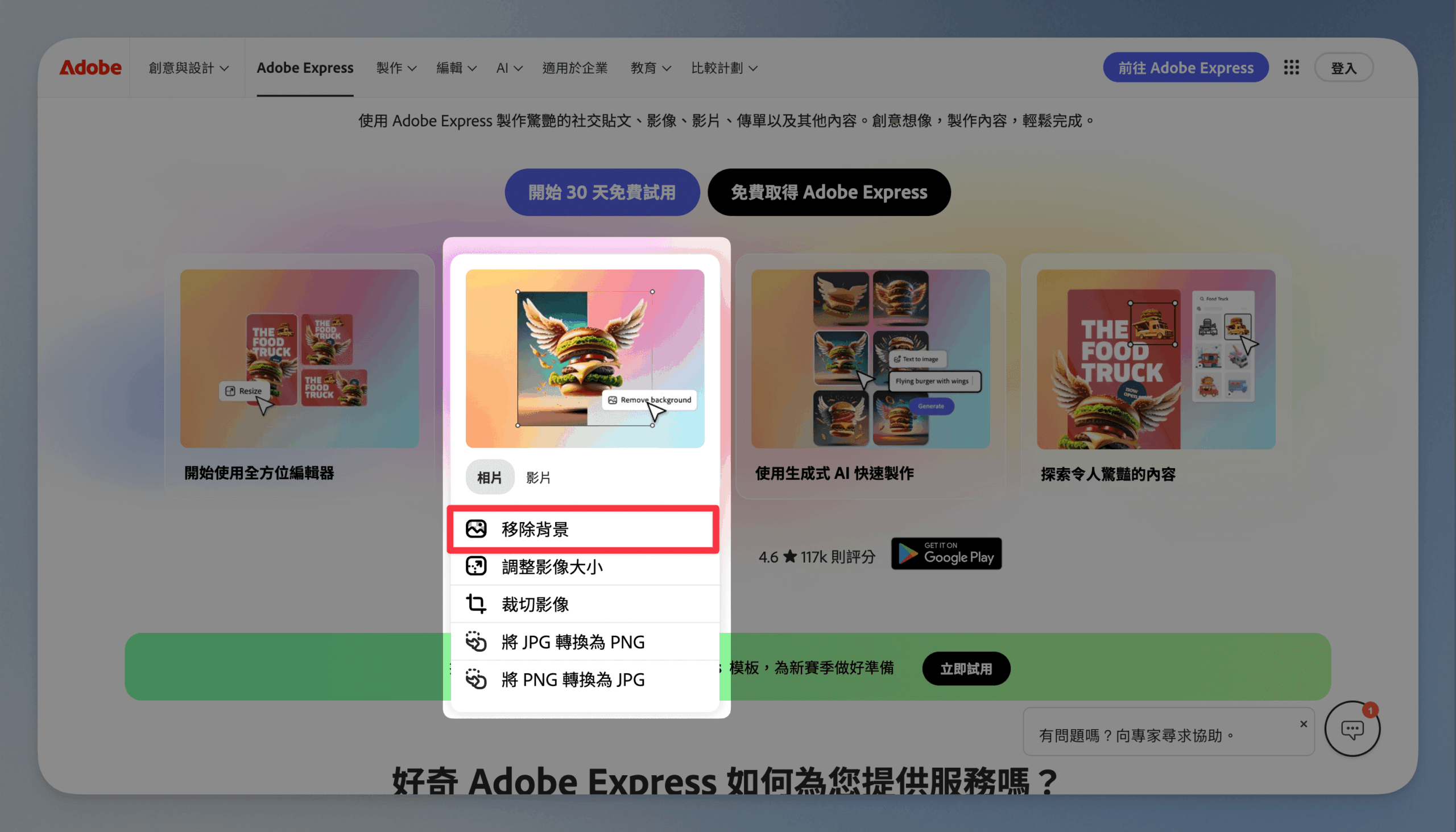 上班族 設計師、內容創作者想快速去背一張照片放進簡報、履歷或文宣,不需高精度修圖,也不想被信用卡綁試用。Adobe ExpressAdobe Express 免費版介面乾淨、操作無痛。