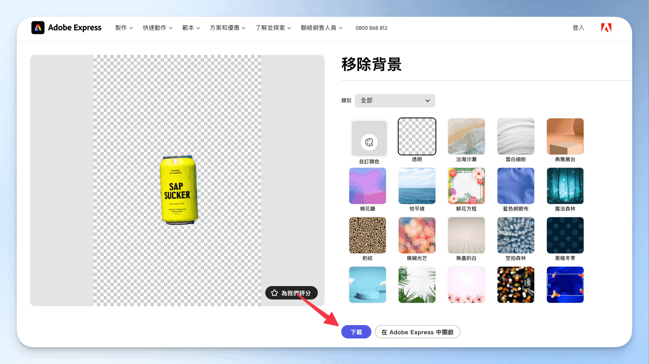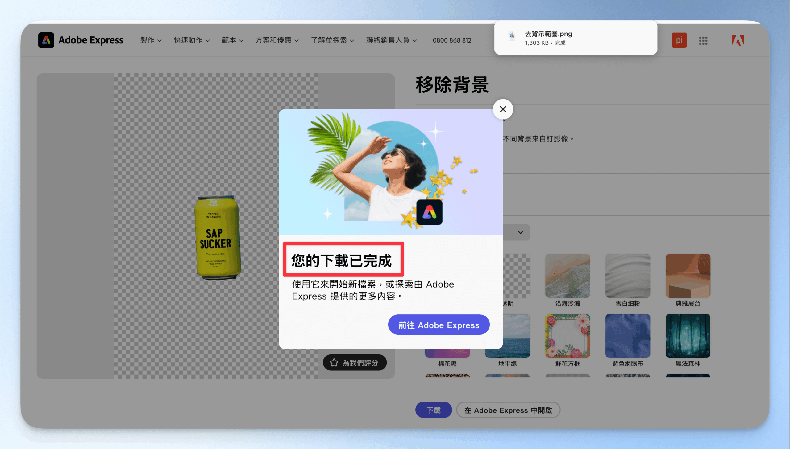 這時他會自動跳轉回剛才的圖片編輯頁面,已經幫你去背完成囉!再點擊上方的下載按鈕就可以了~