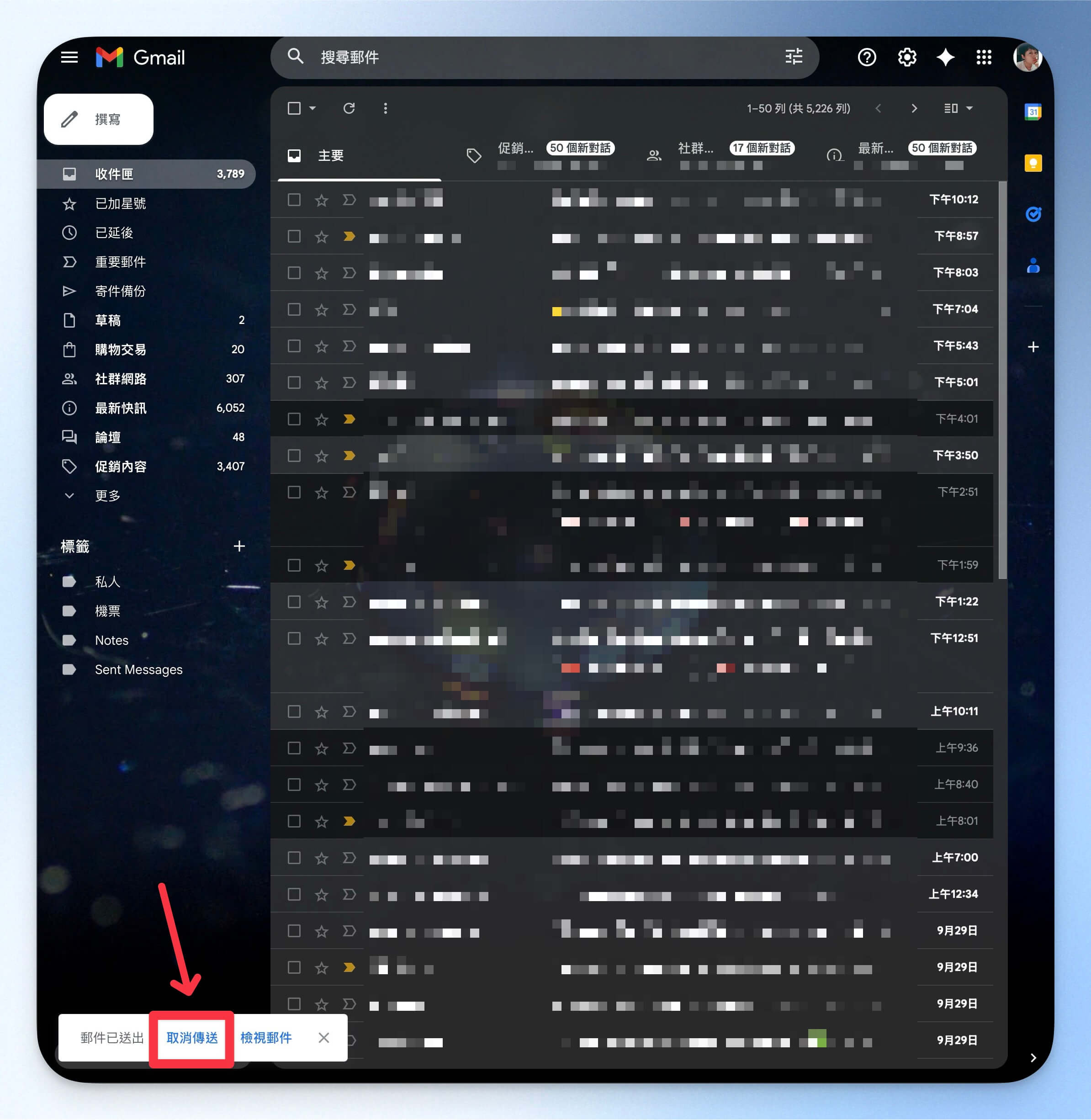 寄出信件後發現錯字?Gmail 預設會給你 5 秒後悔、取消傳送的時間,在發信後 5 秒內,於左下角點「取消傳送」就能救回。你也可以到設定裡把時間延長到 30 秒。
