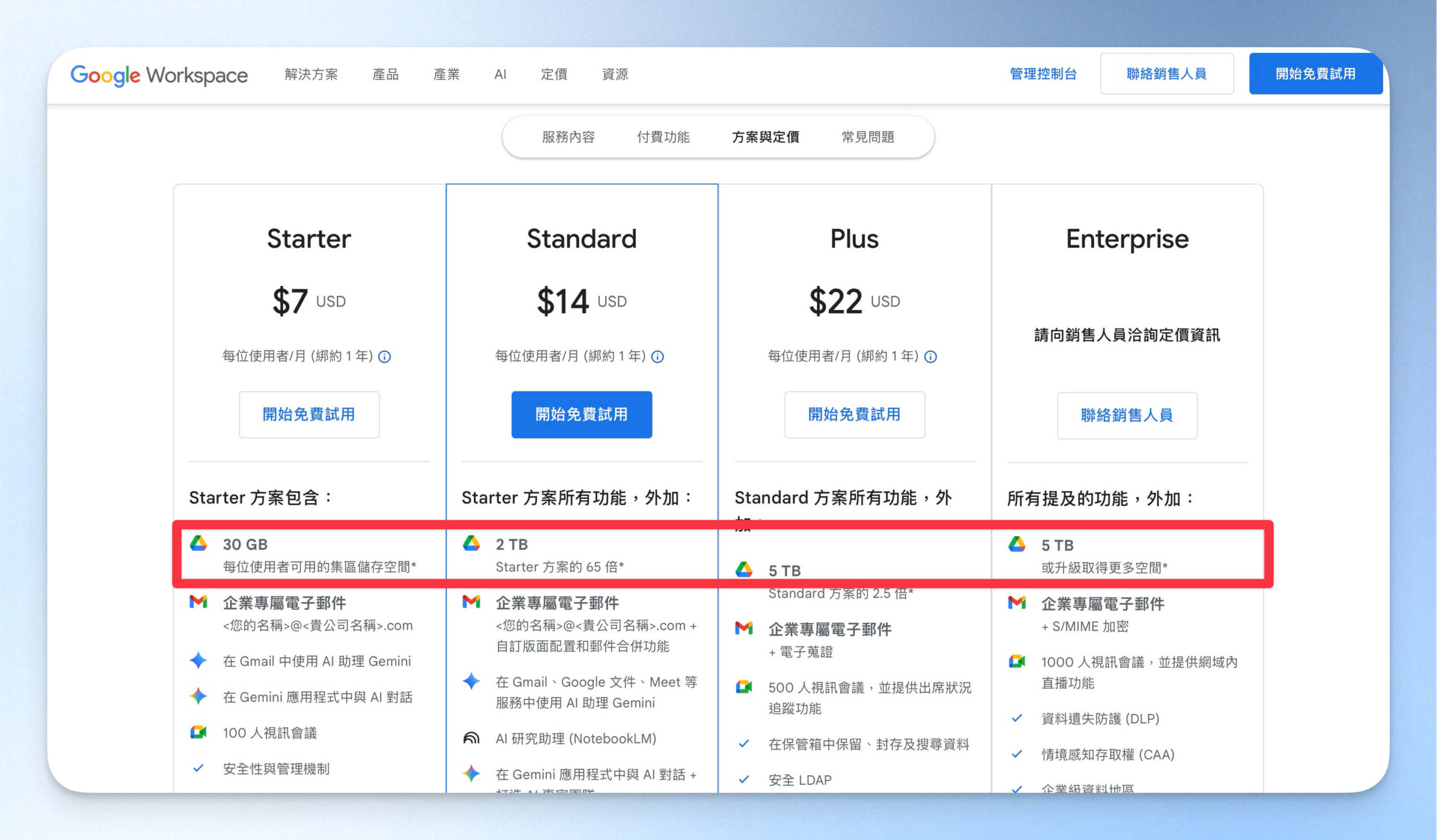 但如果你開始經營品牌、需要團隊協作,或者準備做 Email 行銷,免費 Gmail 的限制就會一一浮現。這時候,Google Workspace 就能幫你解決問題:專業信箱、更多容量、管理控制台、進階的安全防護機制等,一次到位。