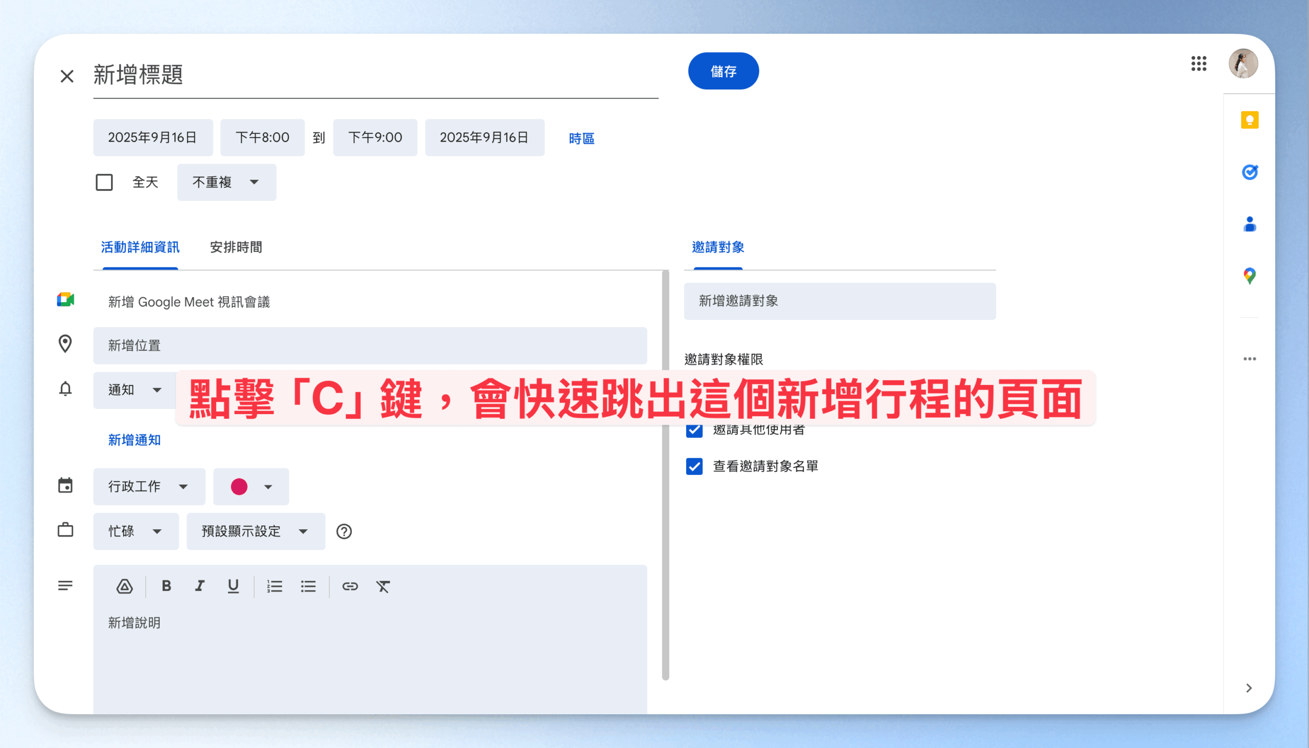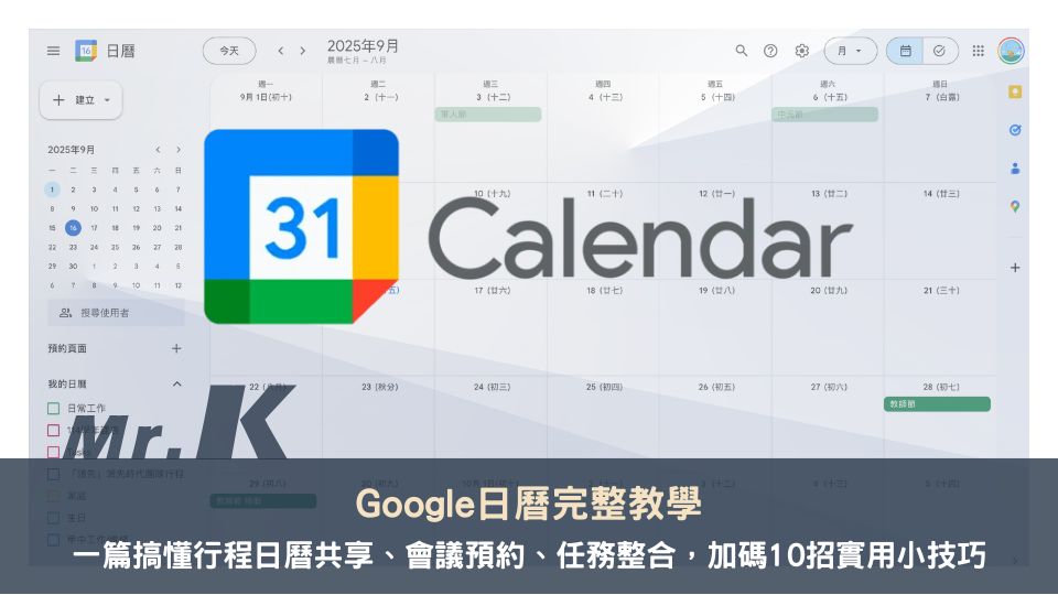 Google日曆完整教學|一篇搞懂行程日曆共享、會議預約、任務整合,加碼10招實用小技巧