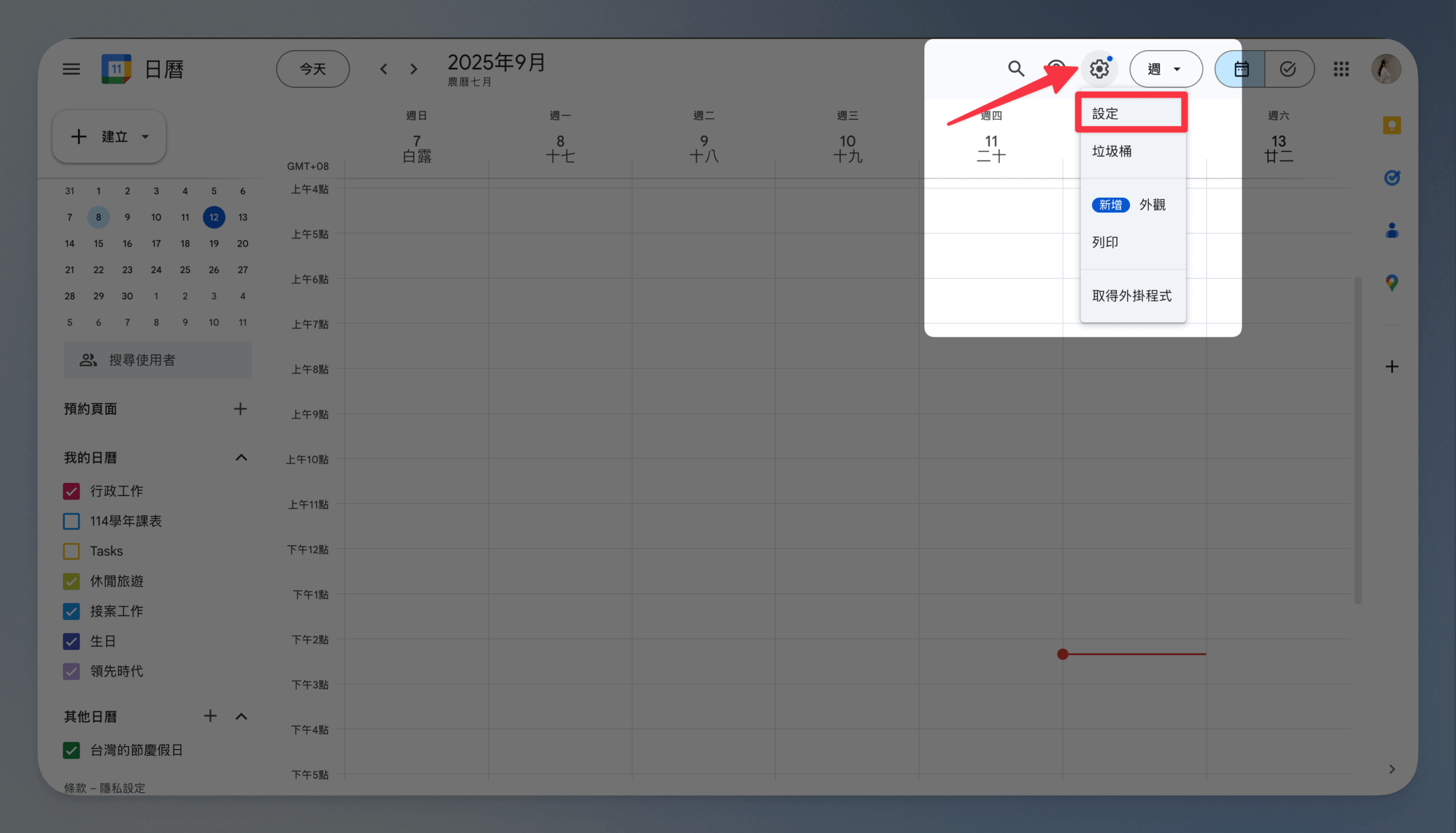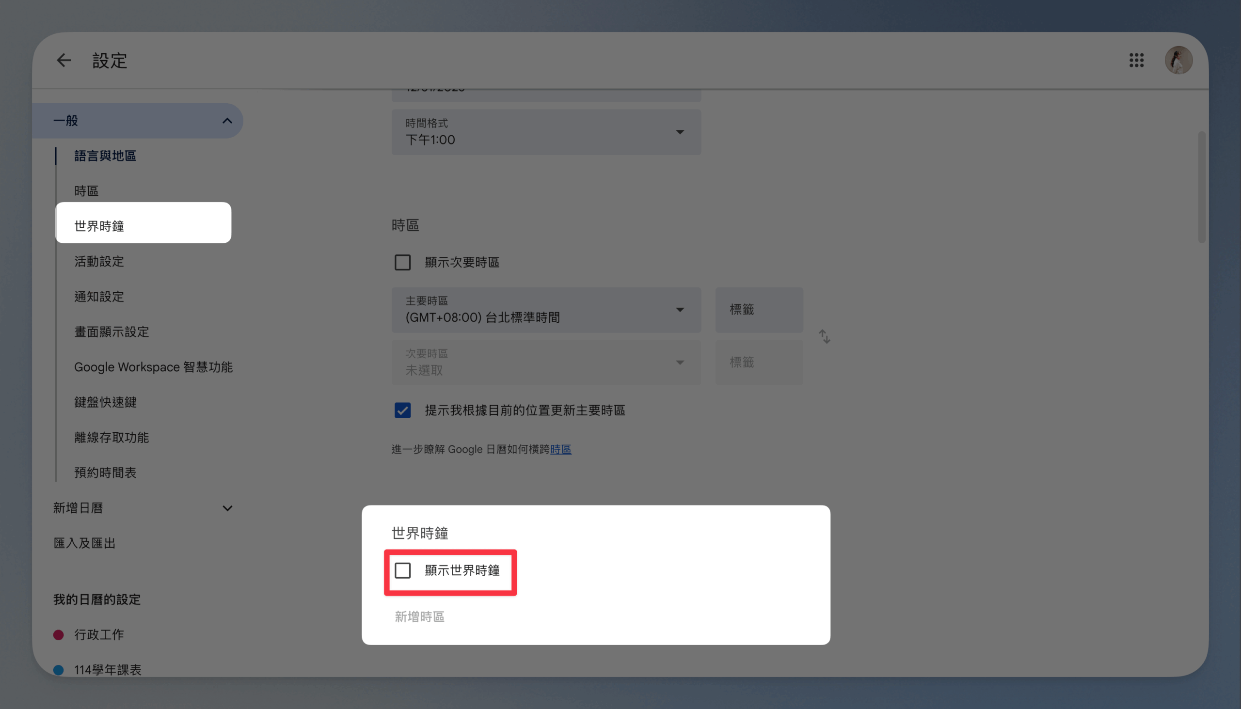 如果你有需要看其他時區時間的需求,其實可以在 Google 日曆上直接查看喔!下方是設定教學:
