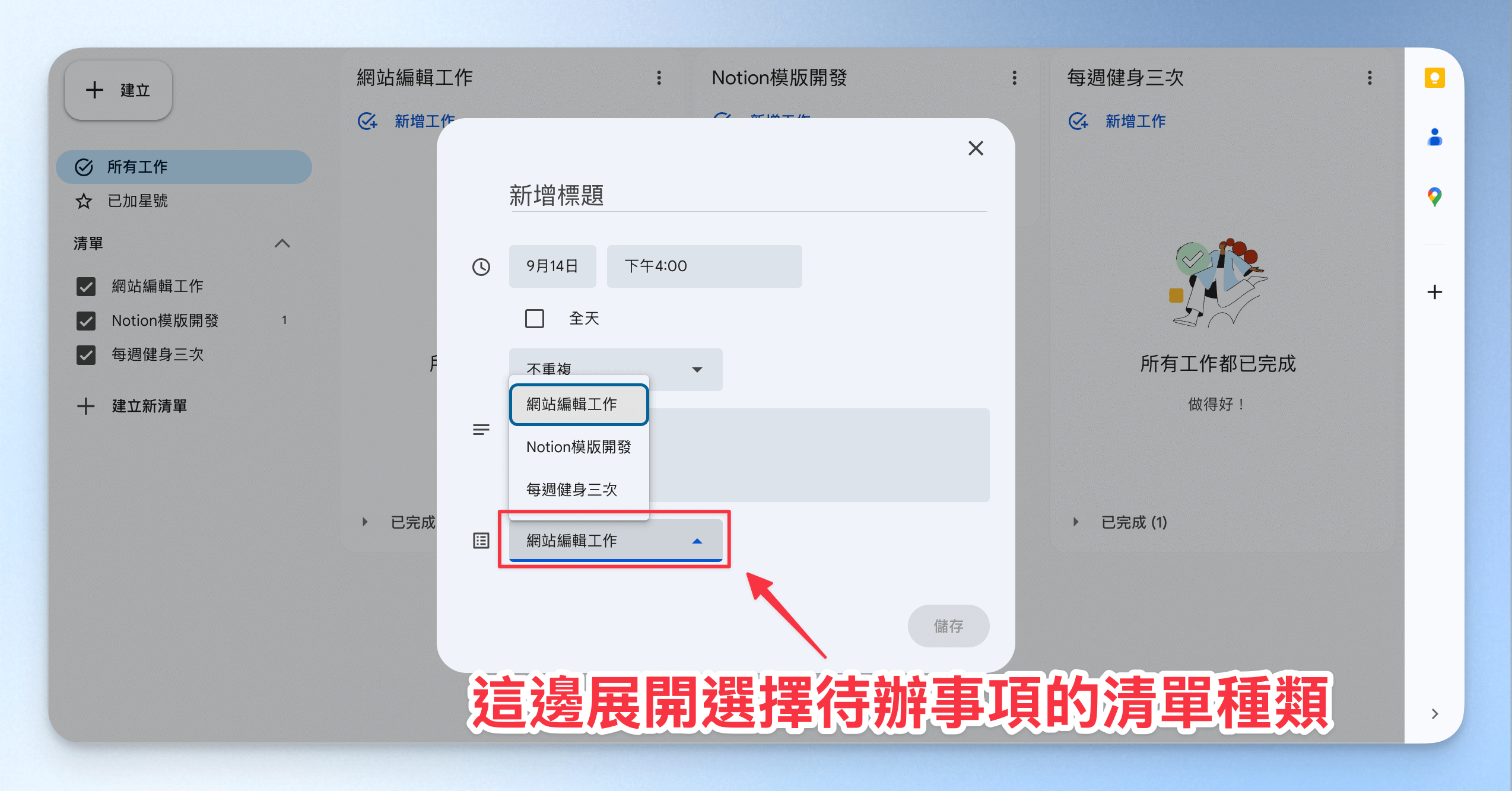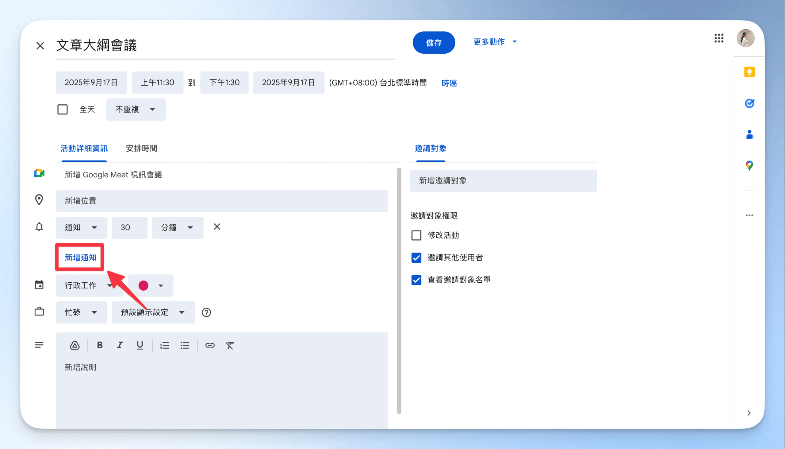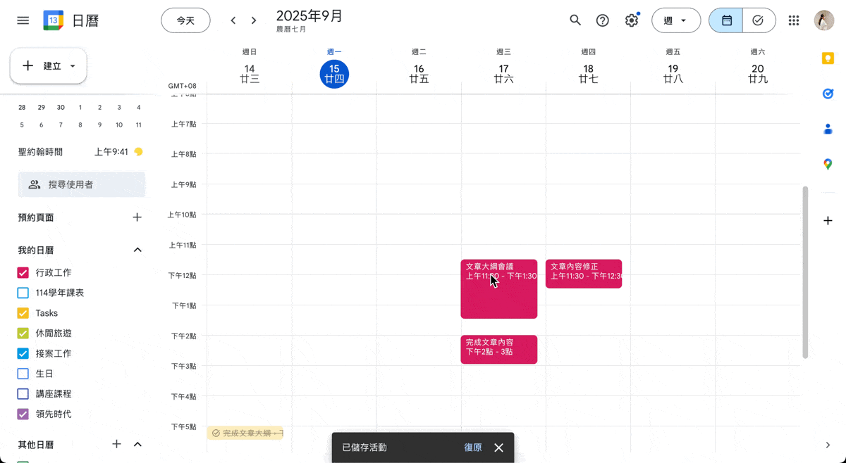 如果你是待辦事項跟行程都需要工具管理的人,直接在 Google 日曆介面上一起新增操作真的很方便。