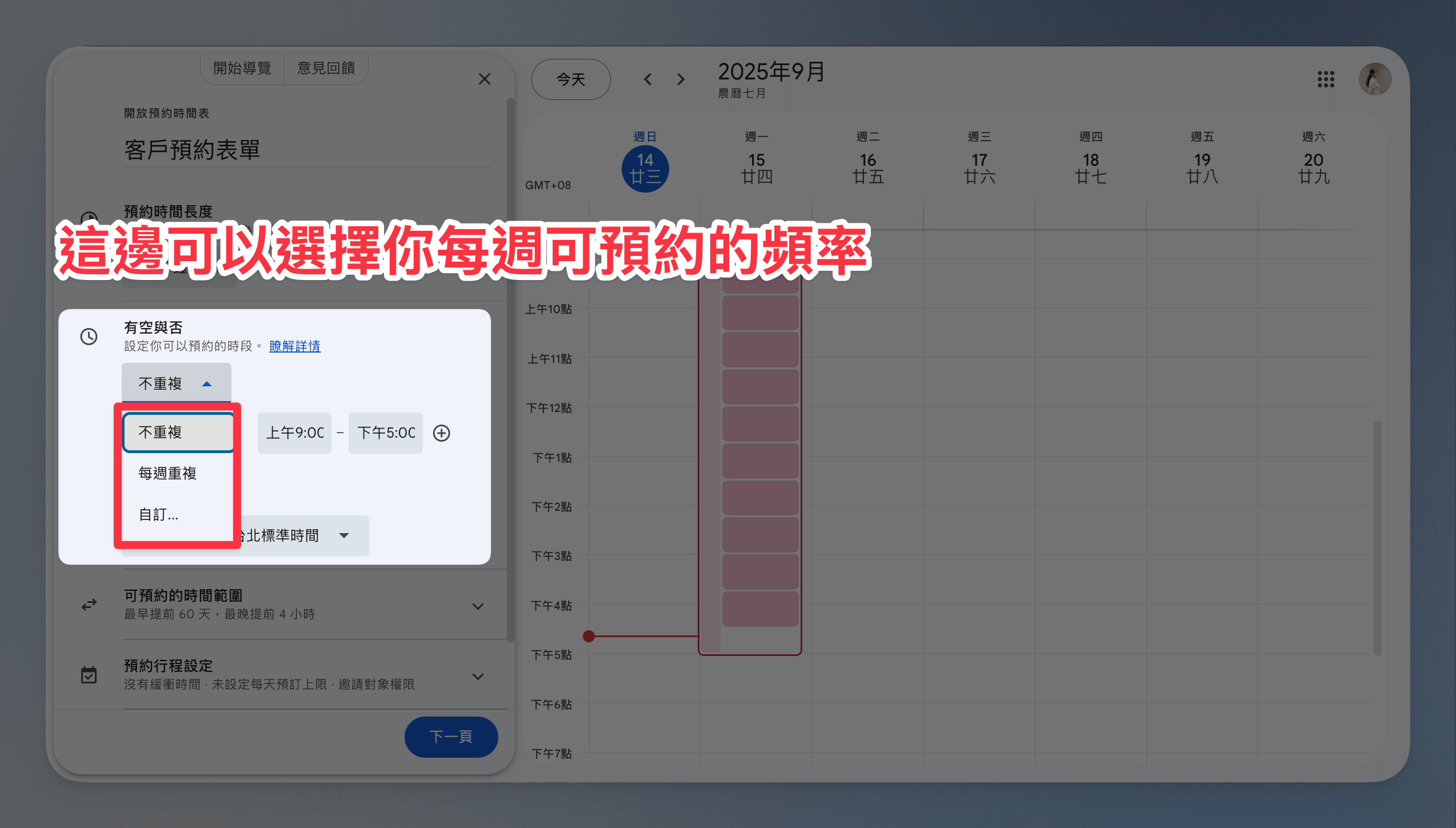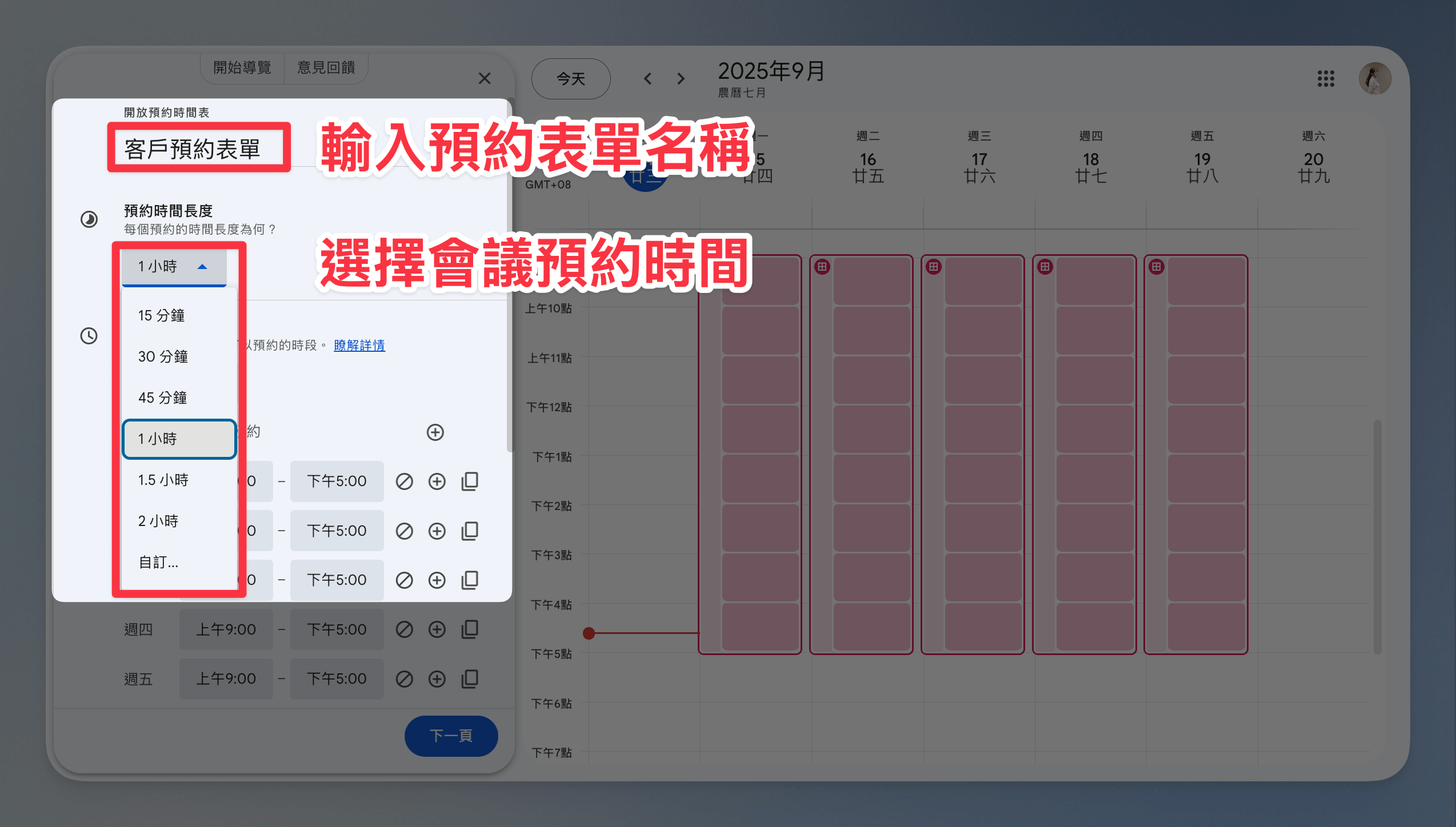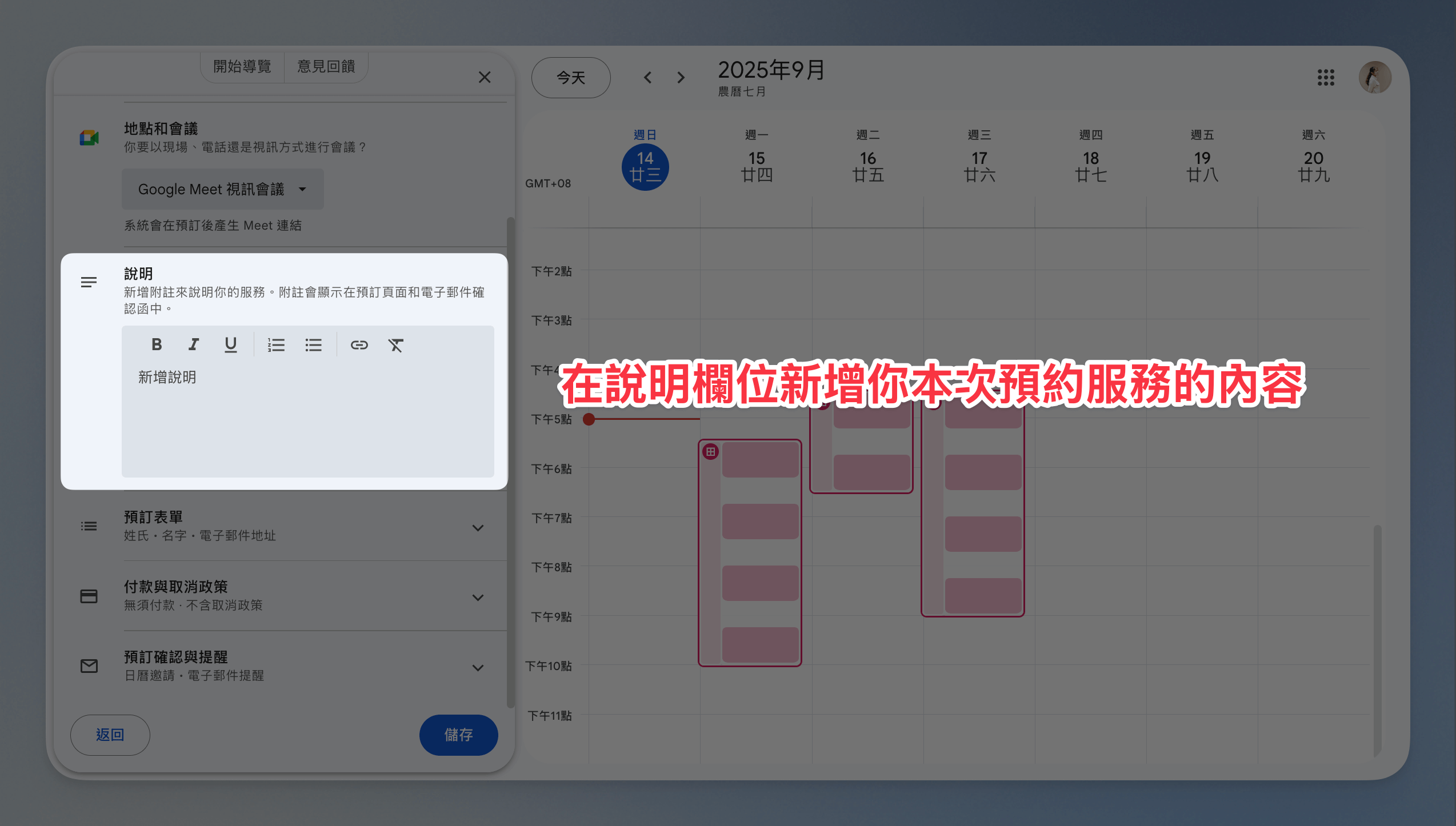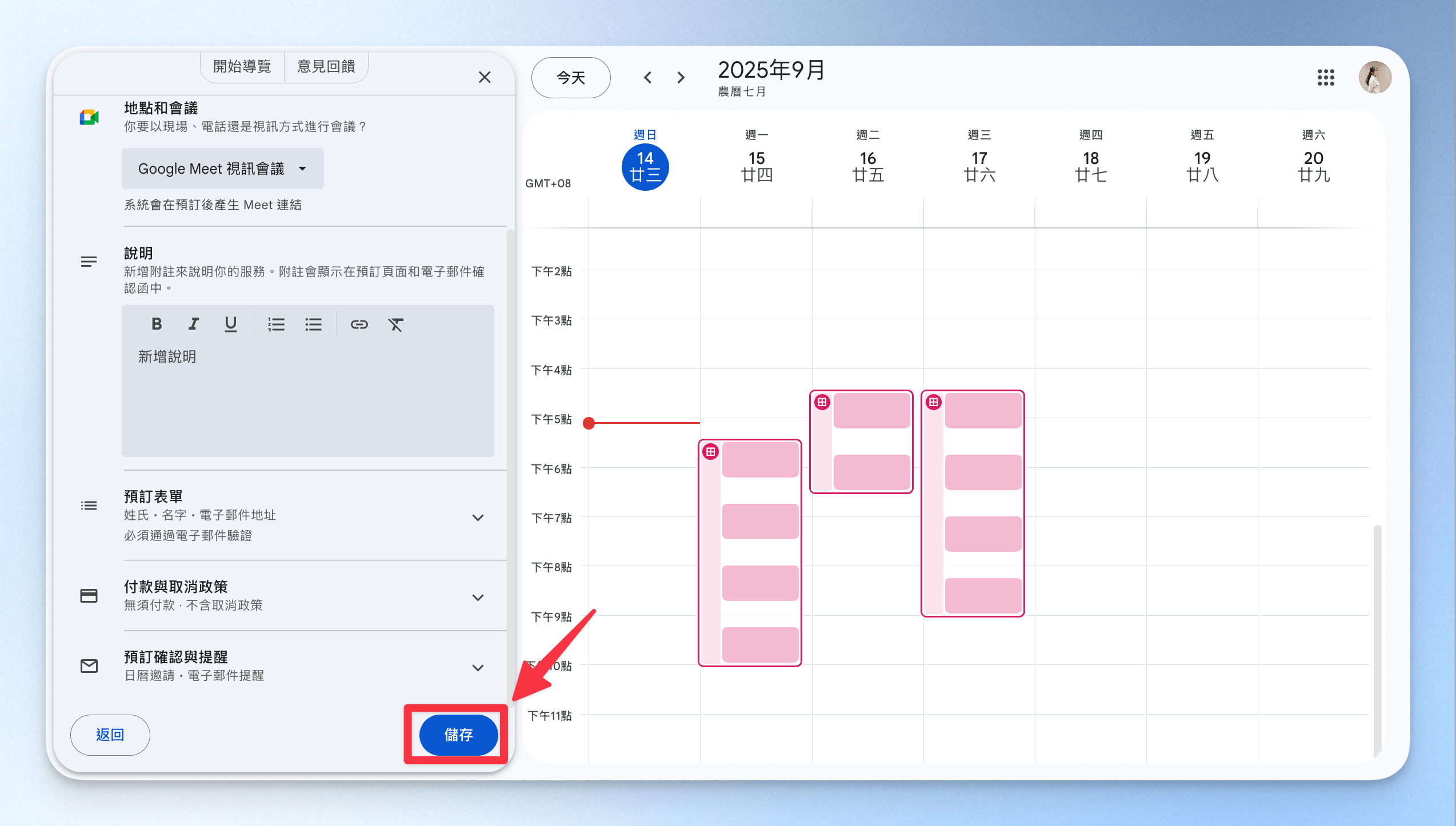 開放會議預約,Google meet 連結自動生成,接案、開會或諮詢超方便