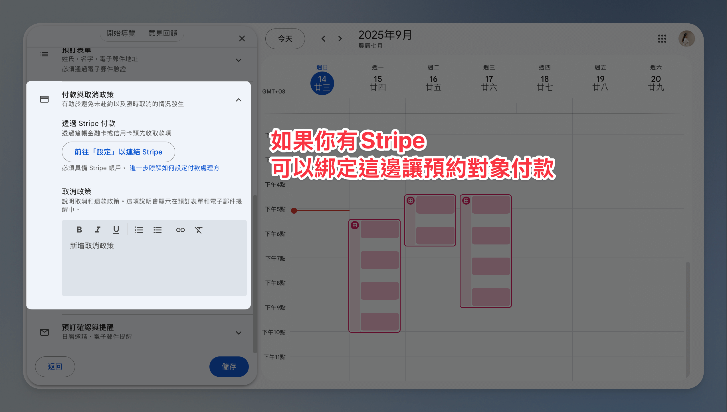 綁定 Stripe 還可以直接讓預約對象直接付款喔!