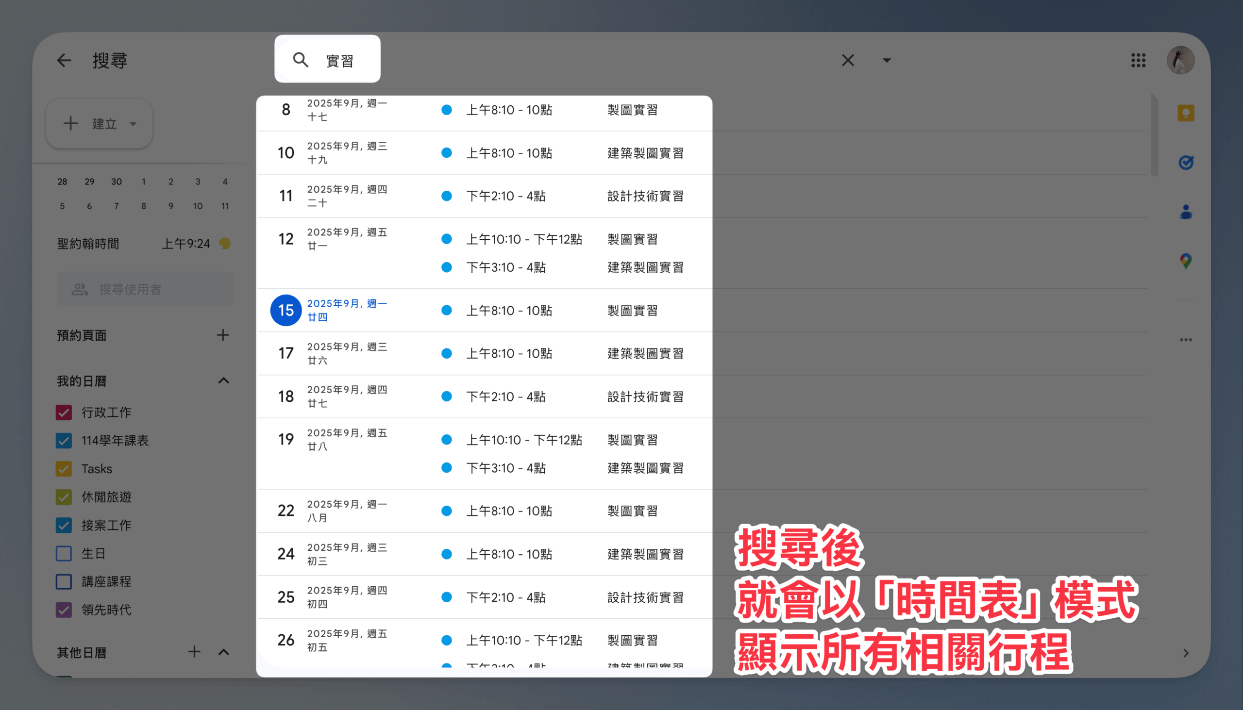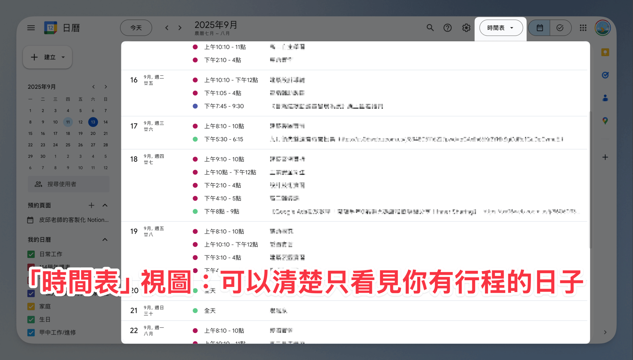 • 如果你平常就在用 Google 日曆,可以直接跟自己的行程整合