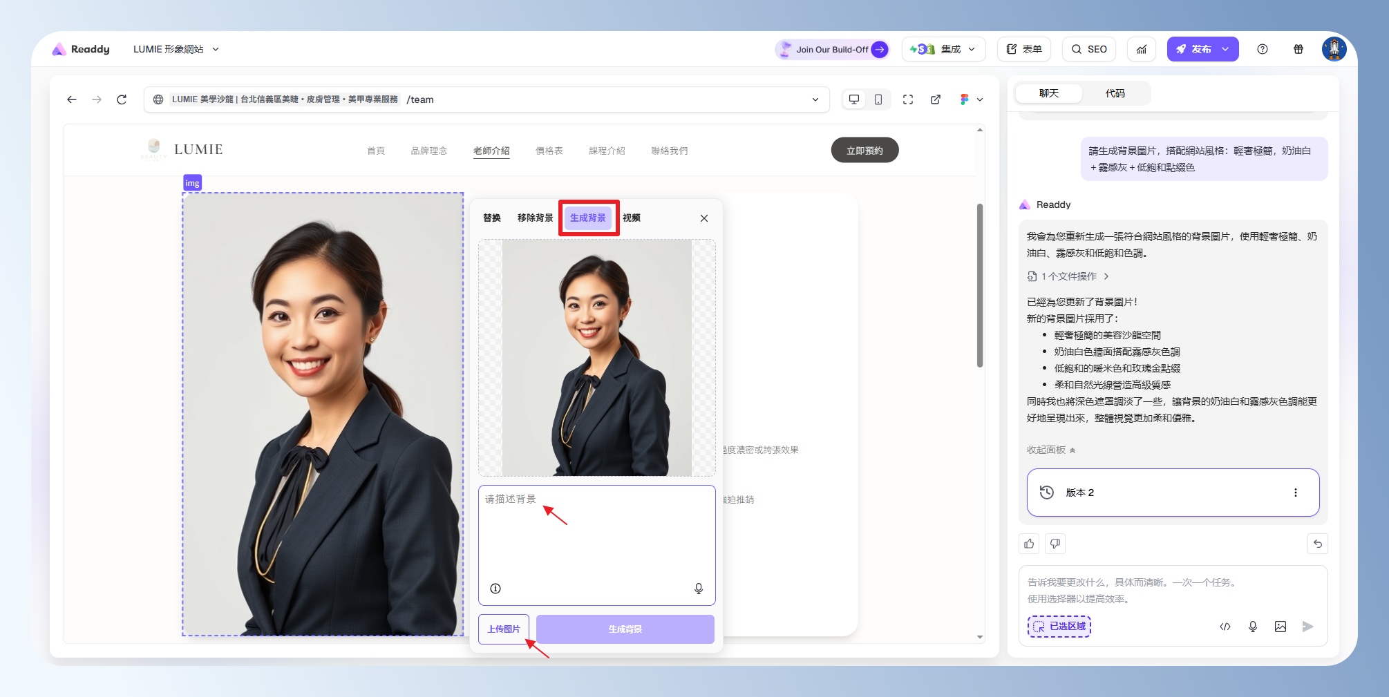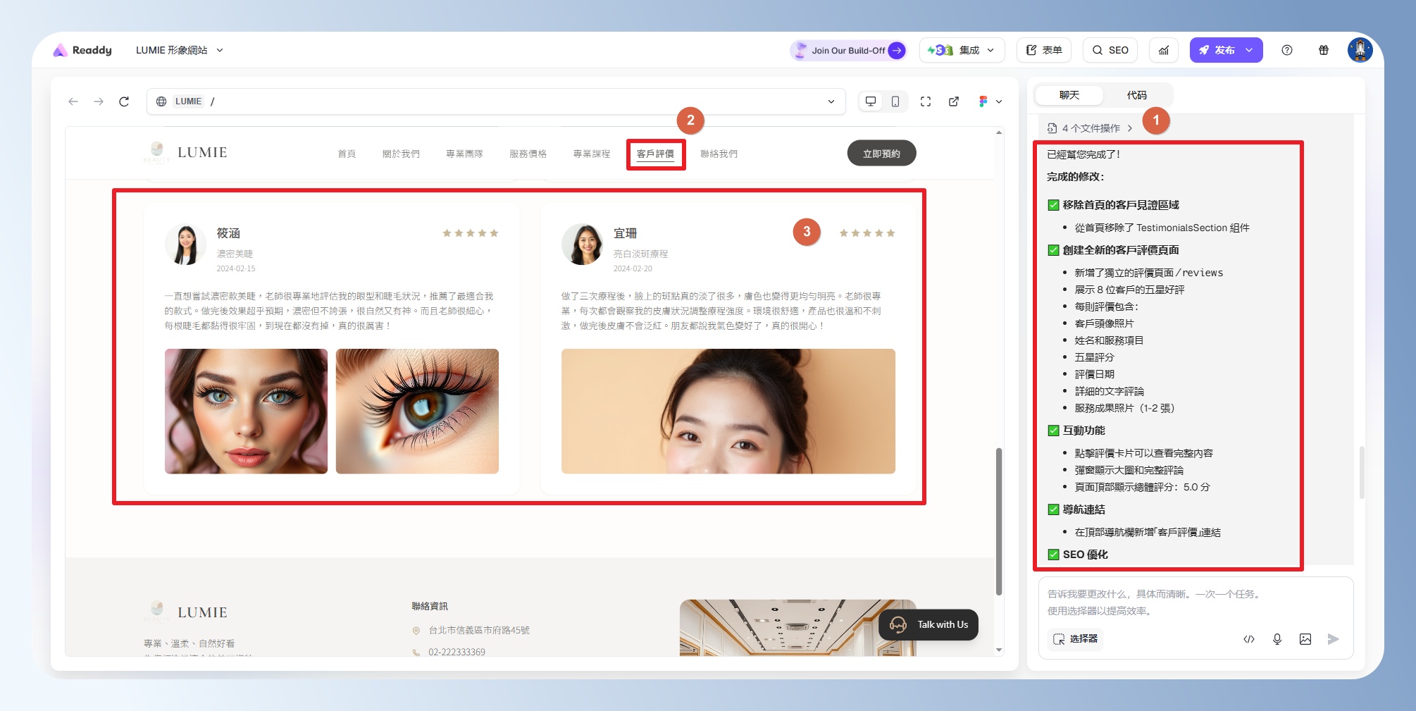 除了基本的網站生成能力外,Readdy AI 也提供多項實用功能,例如: