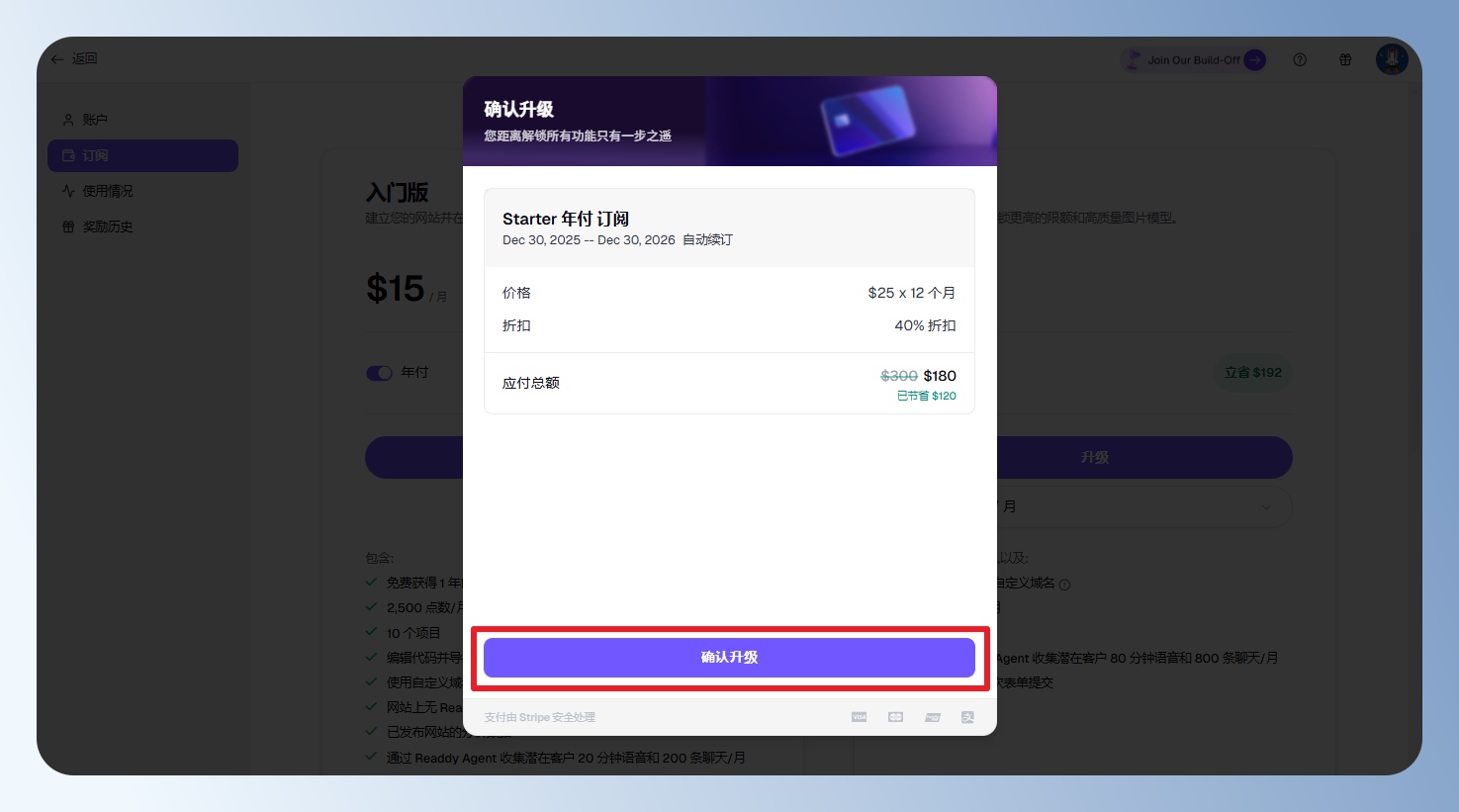 Readdy AI 支援與第三方工具進行串接,讓網站不只是單純的展示頁,而是可以串接 Stripe 金流、Supabase 資料庫。透過串接表單、分析工具或其他外部服務,使用者能將網站與現有的工作流程整合,例如預約表單、追蹤使用者行為,讓網站更貼近實際營運需求。