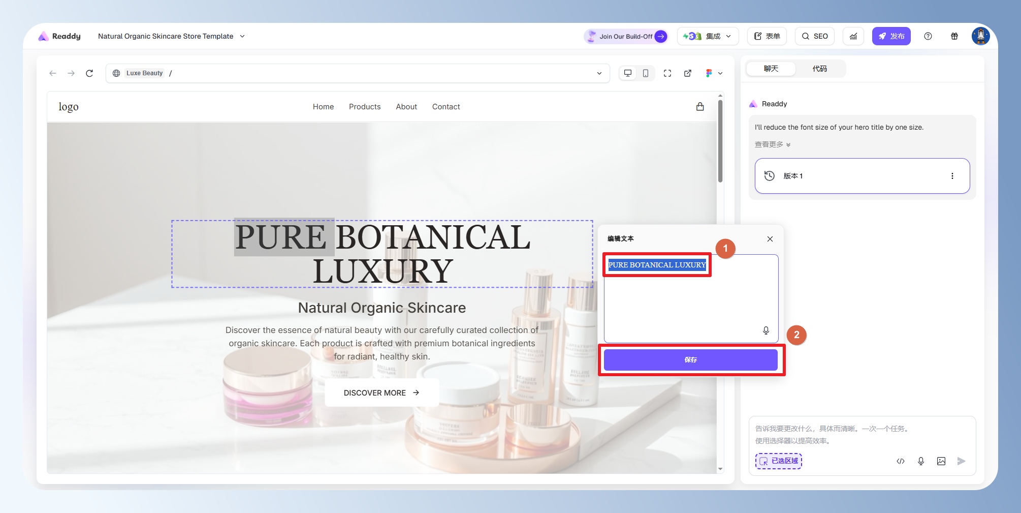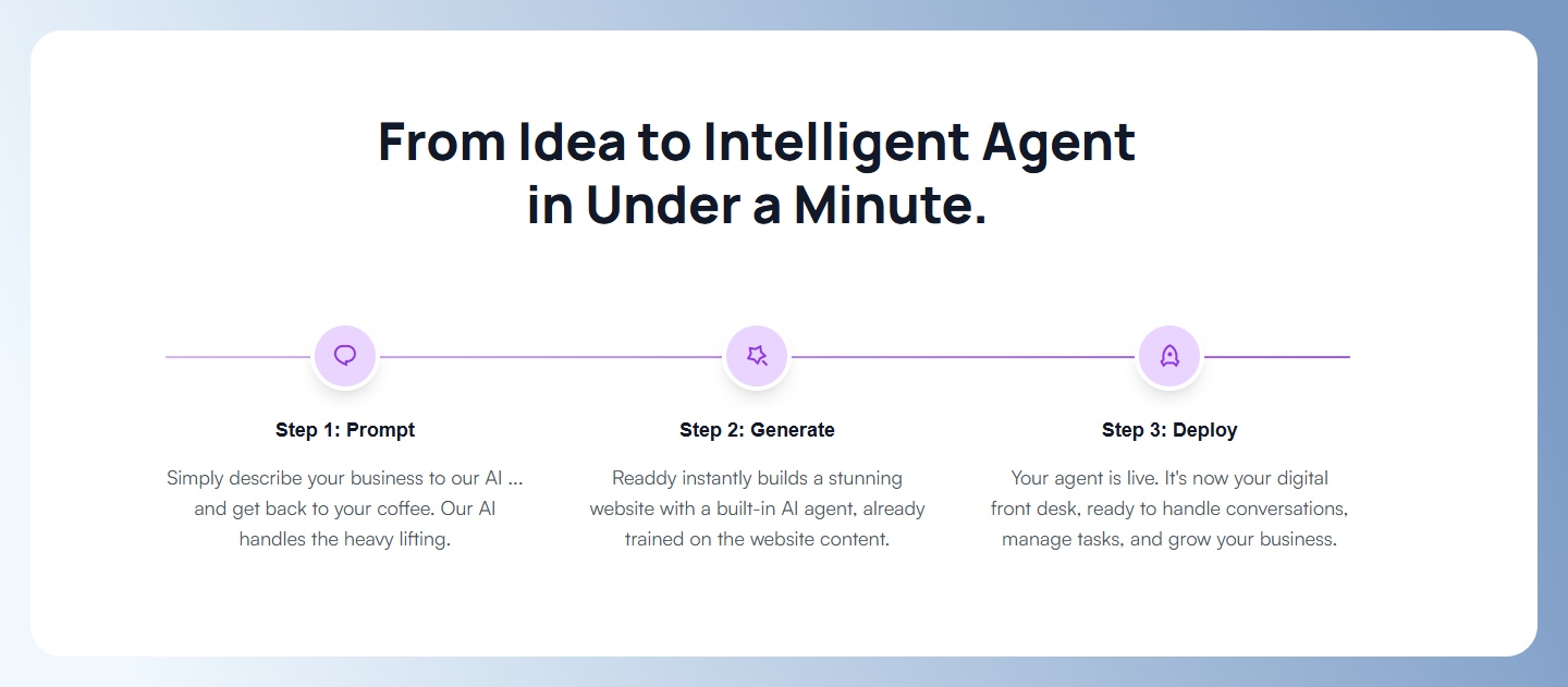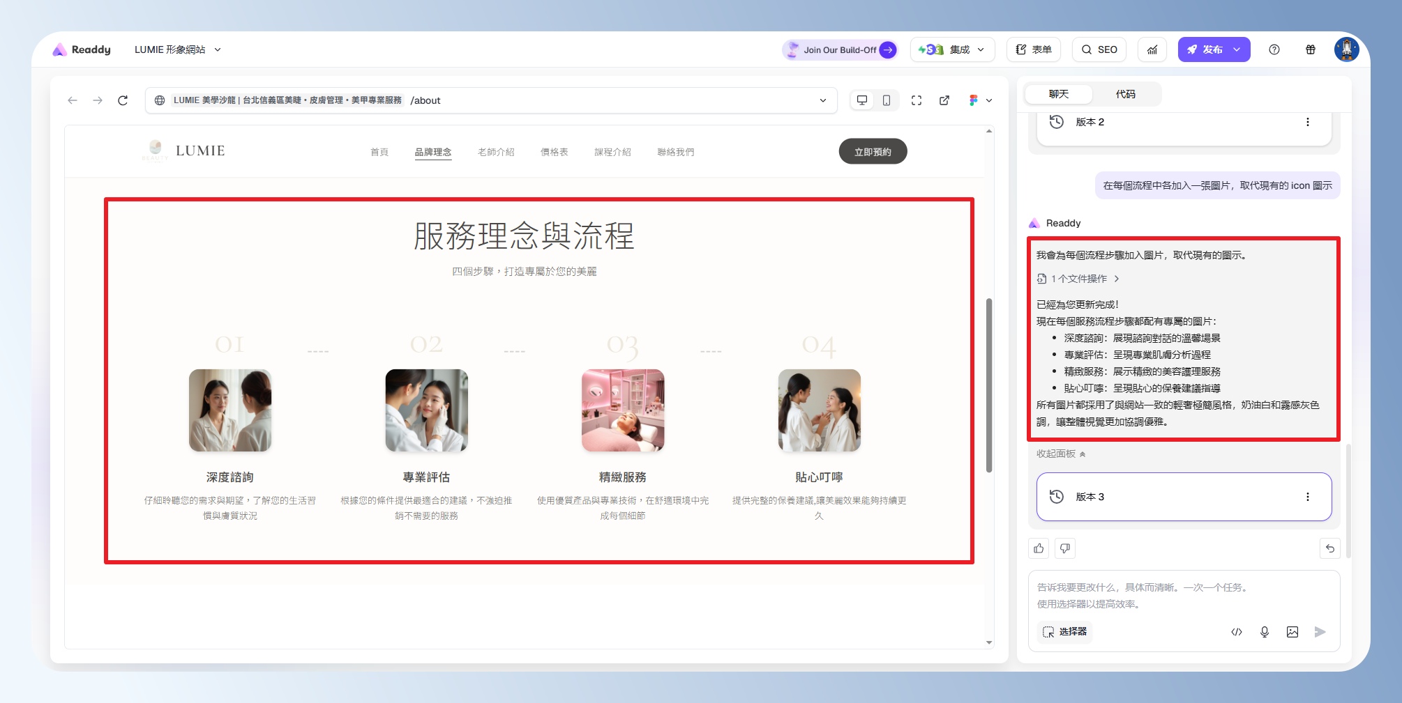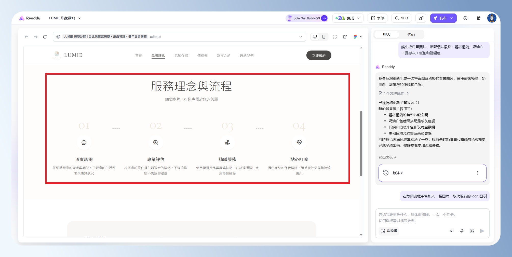 你不需要寫程式,也不用學設計,Readdy AI 使用直覺的操作流程,就算是第一次做網站的新手,也能在短時間內完成一個好看且實用的品牌網頁。