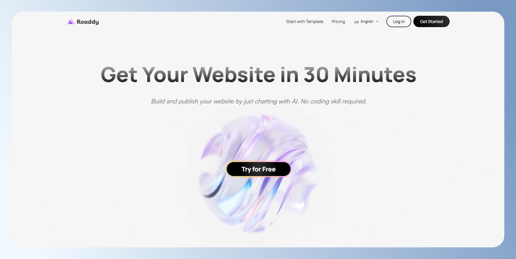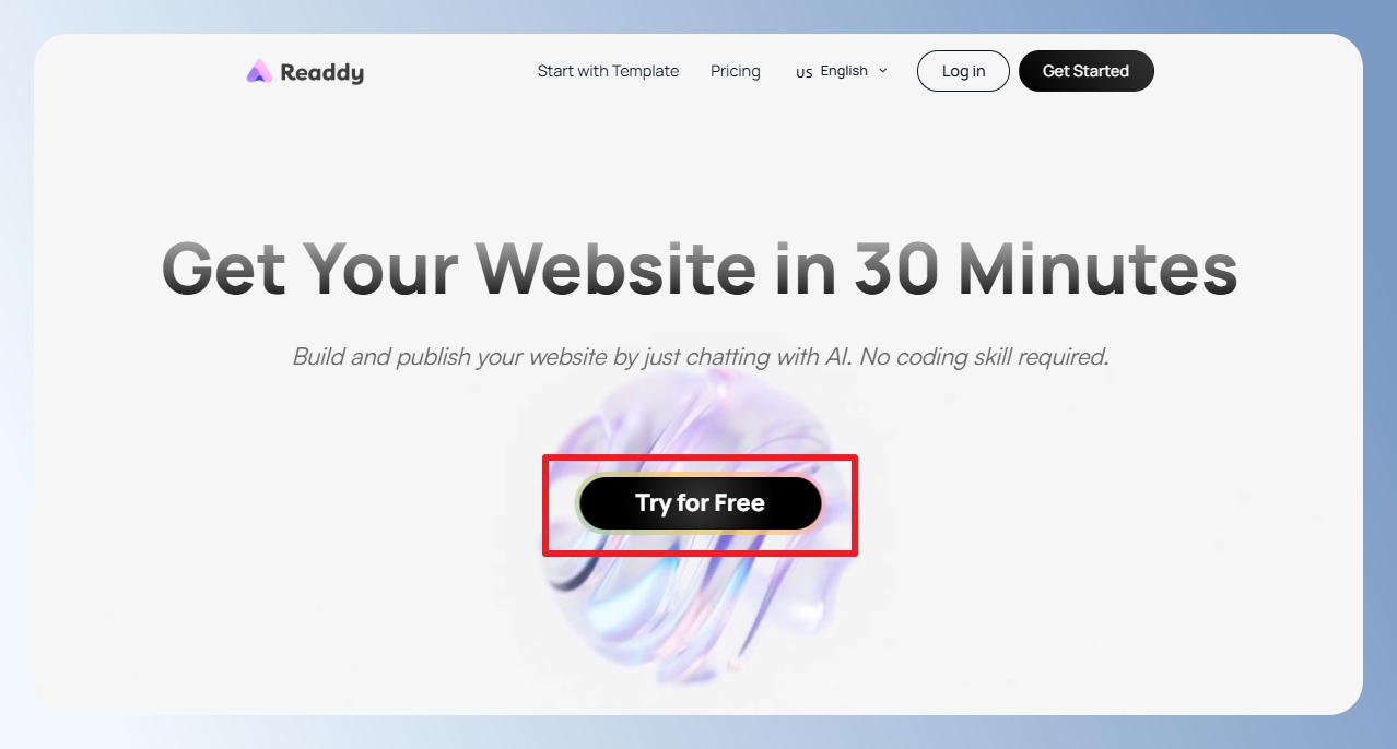 前往 Readdy AI 官方首頁,按一下「Try for Free」按鈕。