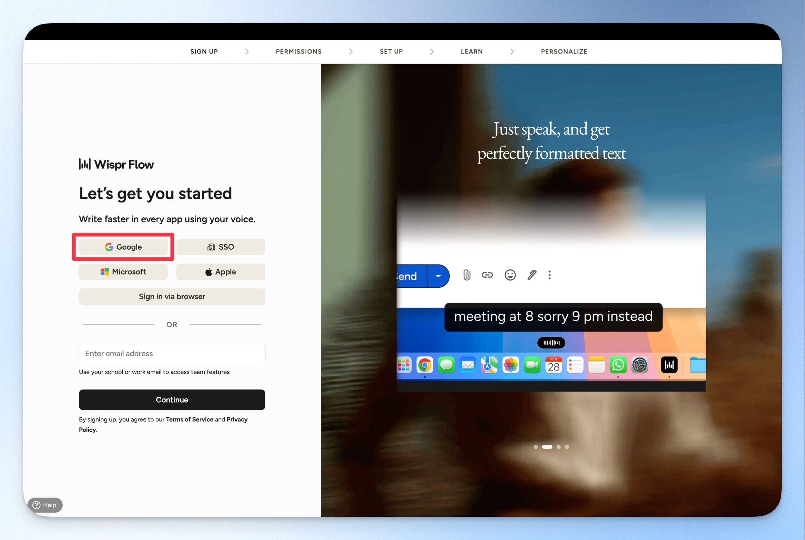 再次選擇登入 Wispr Flow 的賬戶。