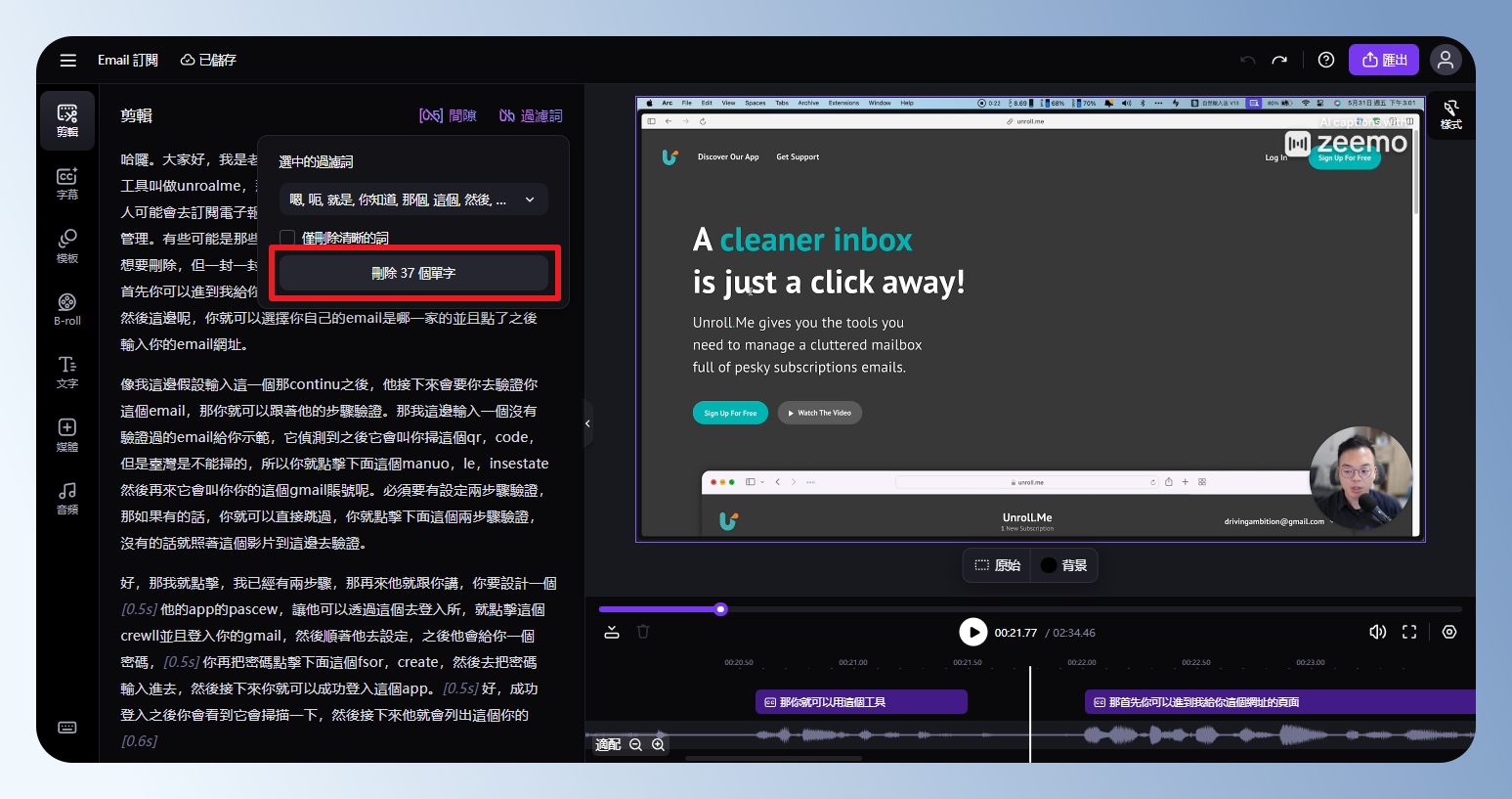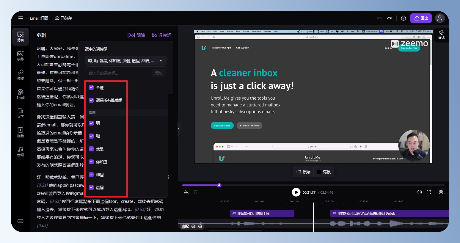 以前要手動打一段字幕,至少要花上幾小時。但 Zeemo 的 AI 自動上字幕功能,讓這件事變得超快、超準。