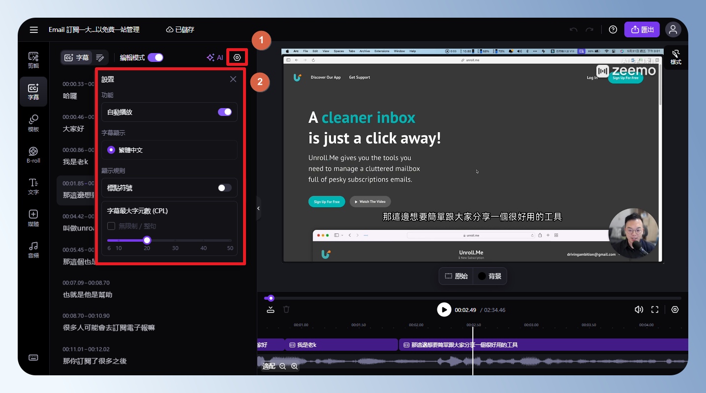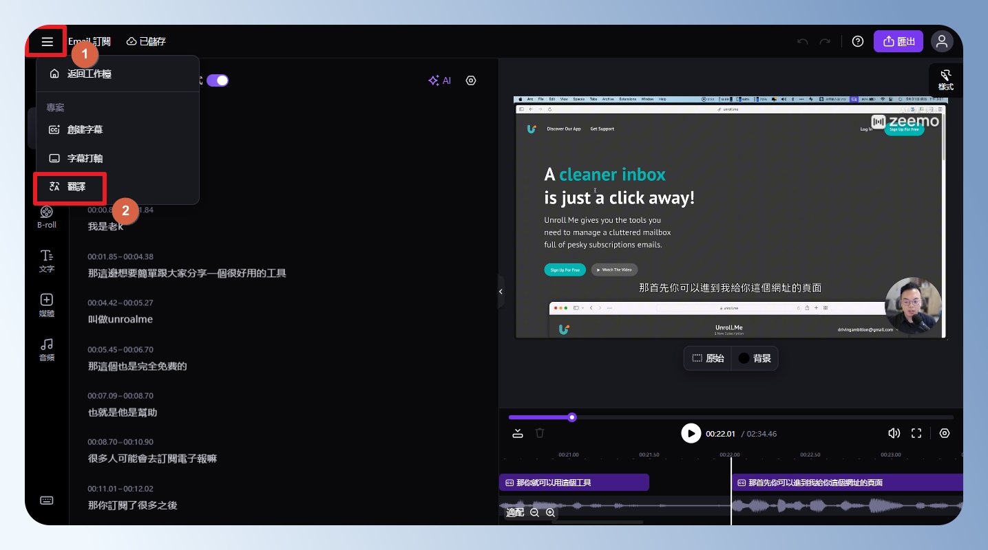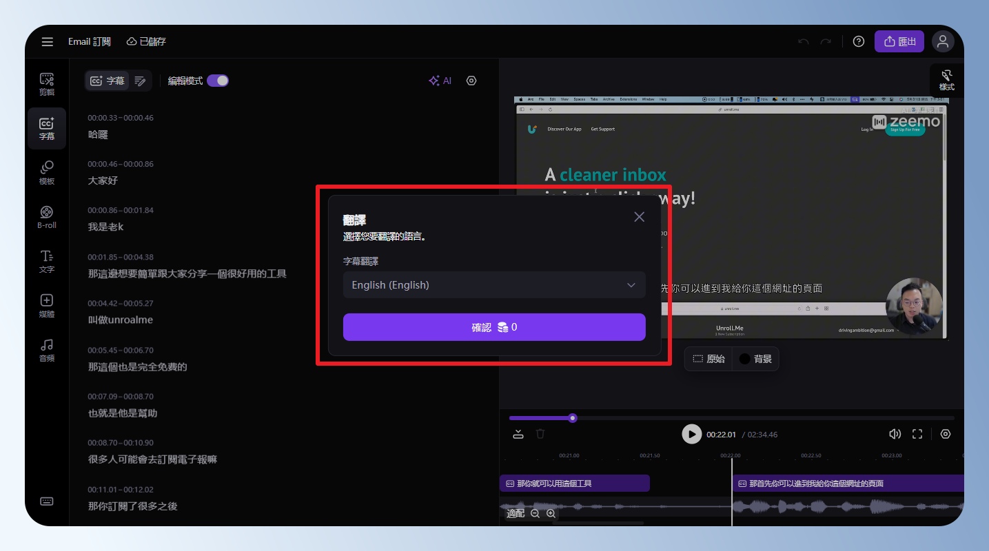 – 【Zeemo 繪影字幕】創作者最愛的 AI 字幕神器?影片上字幕+翻譯超省時!