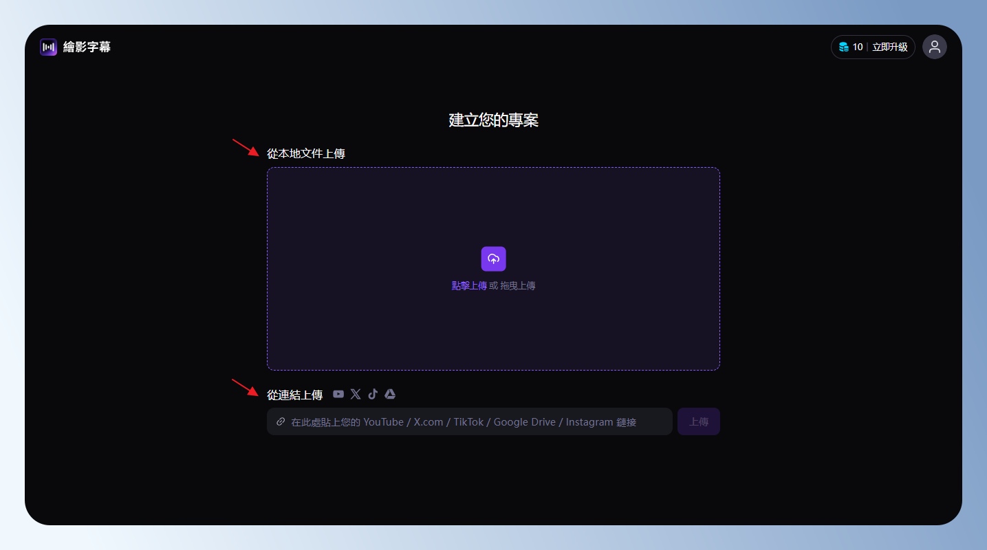 接著上傳你的影片,或是貼上社群平台的影片連結。