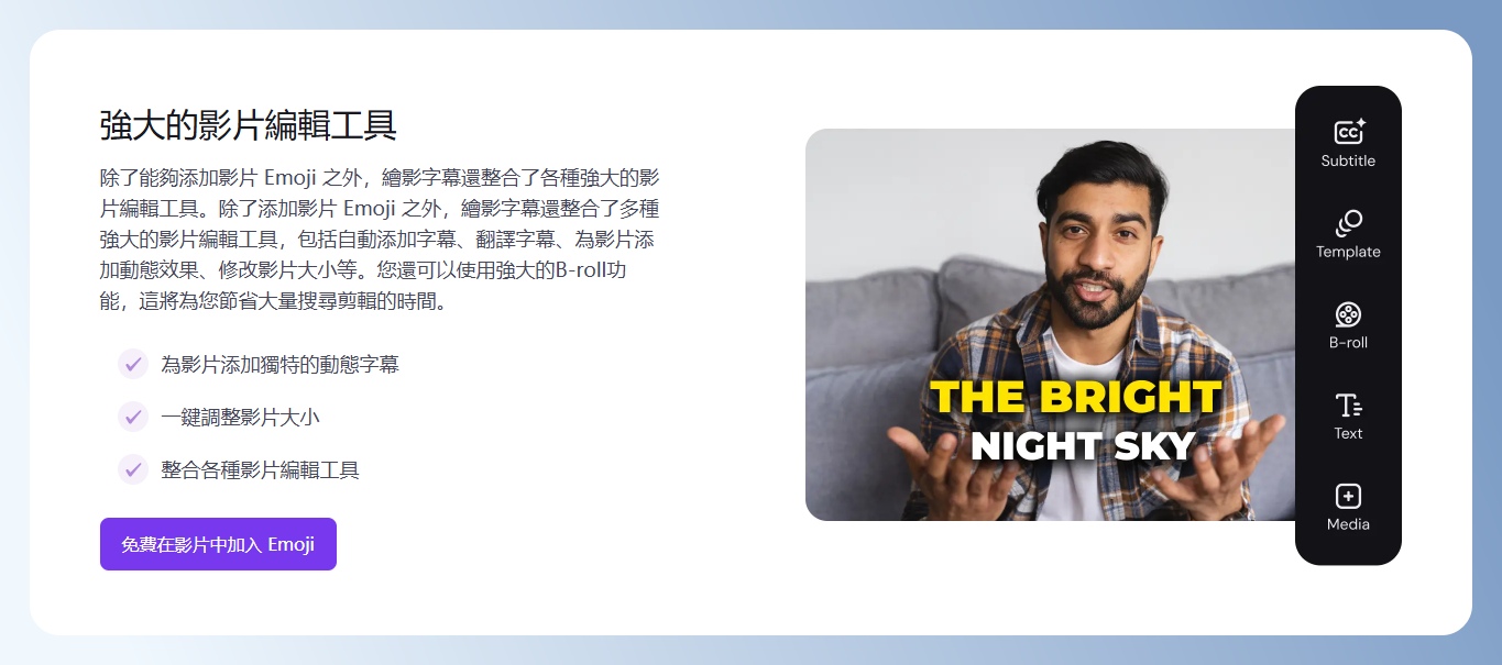 非常適合自媒體創作者與社群小編使用,讓你在最短時間內完成專業又有質感的影片內容。