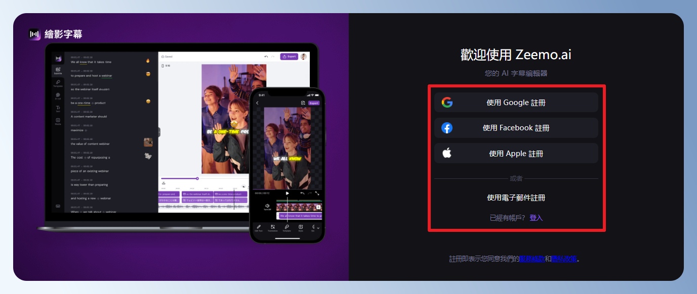接下來的教學,我將使用 Zeemo 網頁版的免費方案,進行功能操作說明,帶你一步步了解如何使用 Zeemo 幫影片自動上字幕。